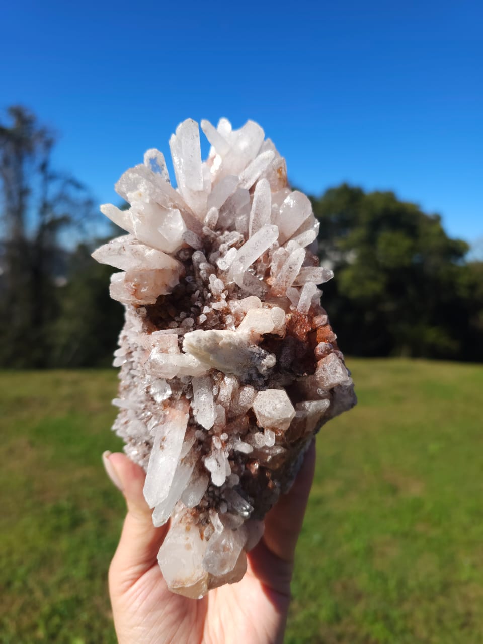 Varios cristais juntos e apontando em direções diferentes, e refletindo a luz em direções diferentes, as drusas apresentam uma geração de energia muito potente!