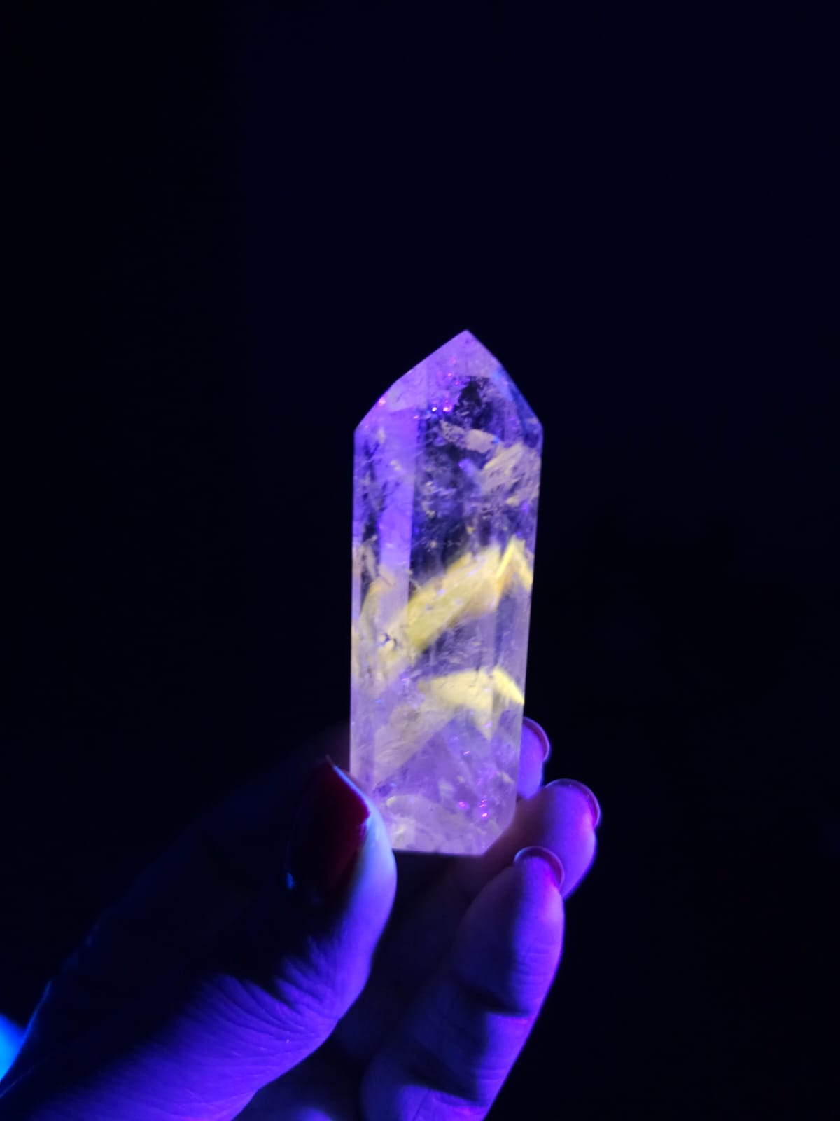 Reações UV em cristais de Quartzo são muito raras principalmente em linhas definidas como é o caso destas preciosidades, em sua maioria formando Phantom 💎