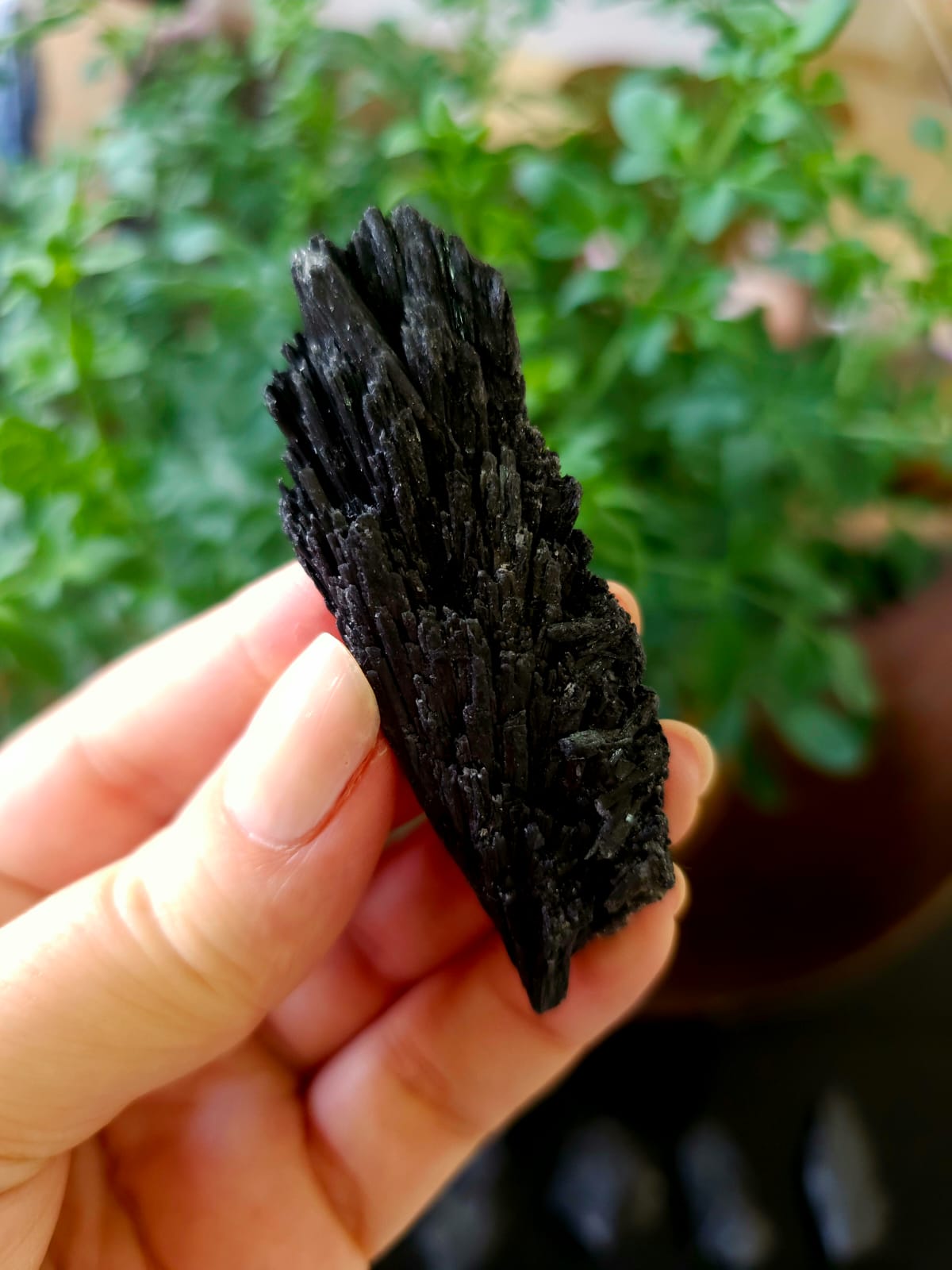 Um cristal que faz correspondência com a Cianita Azul, a energia da Cianita Negra também trabalha nossa proteção contra energias pesadas e até mesmo nossa própria negatividade ✨