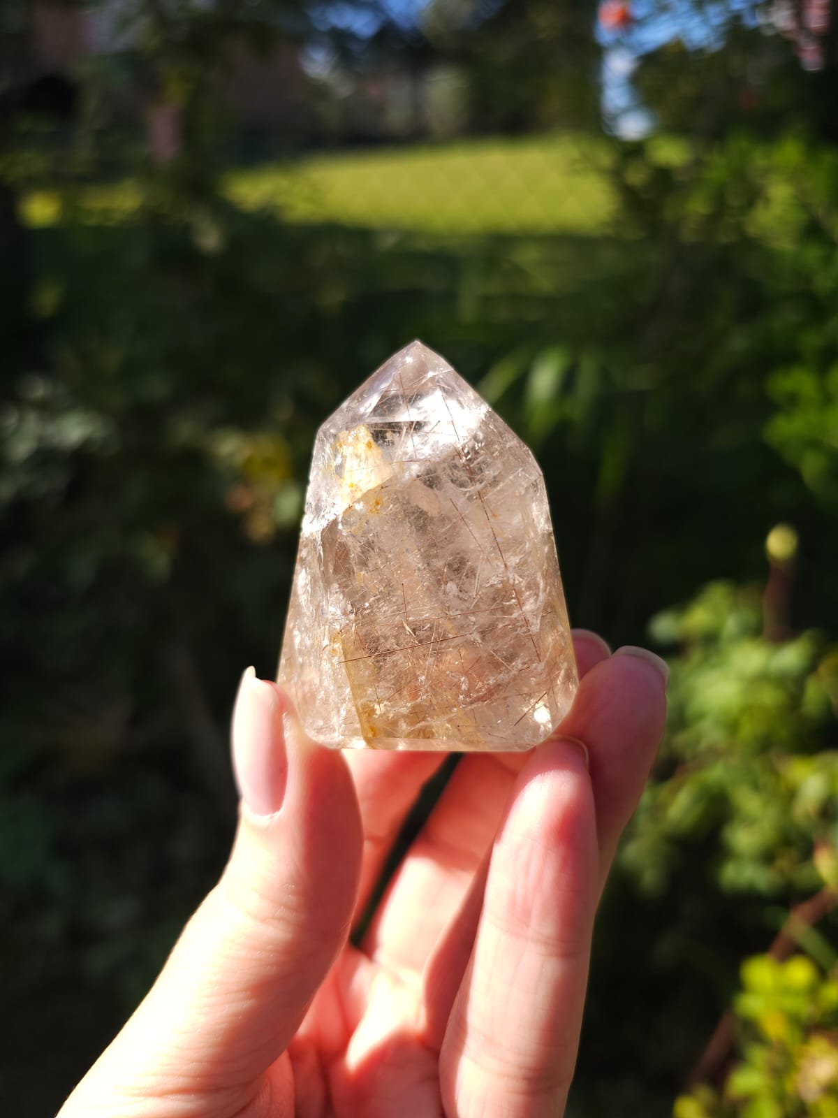 Poderosos canalizadores de luz para o Chakra da nossa Coroa, os Rutilos são poderosos aceleradores, de vibração altíssima eles transmitem a energia através de suas linhas, promovendo desbloqueios e expansão, amplificando nosso poder de manifestar e realizar.