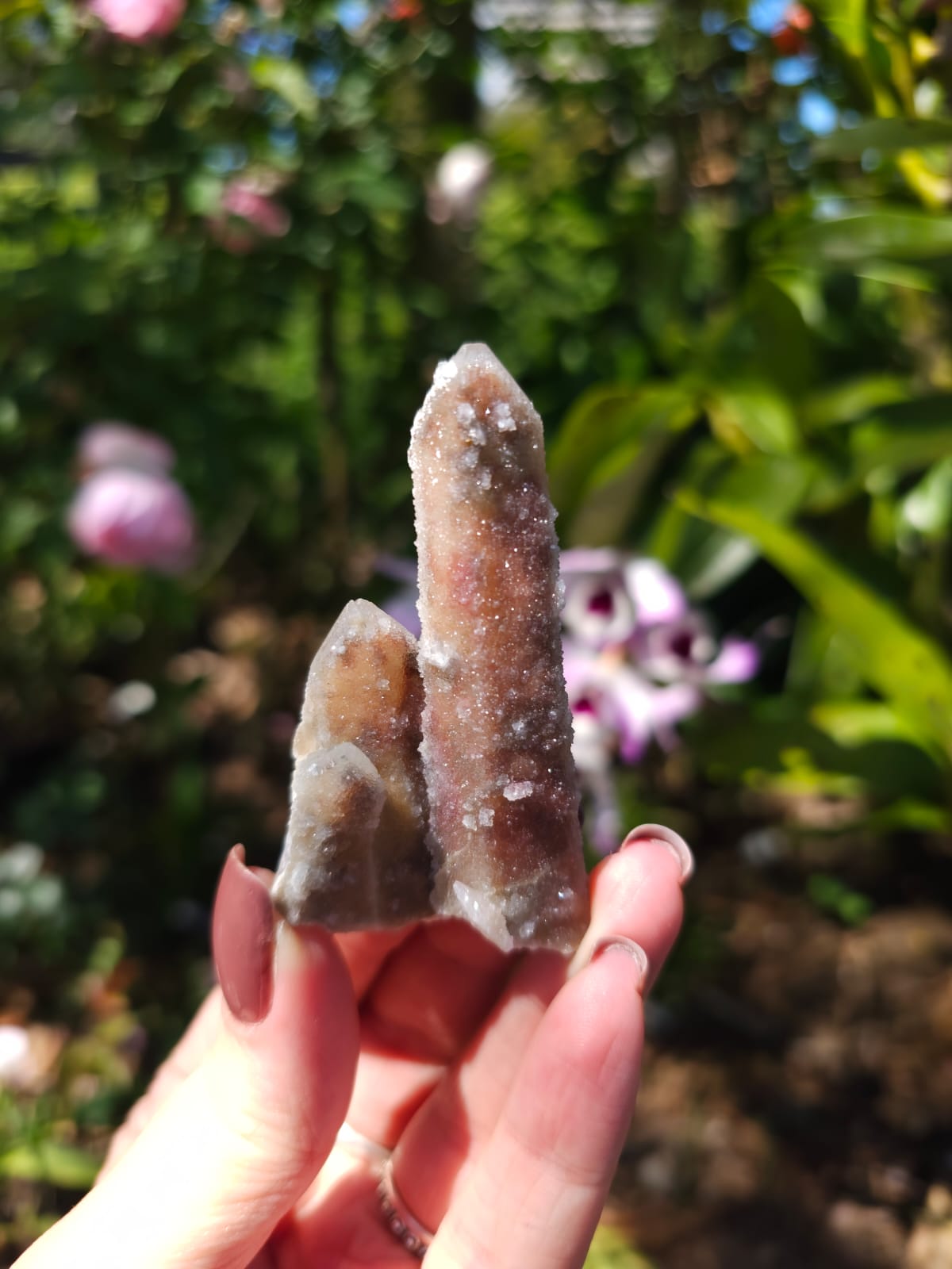 Lembrando varinhas mágicas, caracterizam-se por sua delicada cor e cobertura total do cristal principal por inúmeros micro cristais brilhantes ✨️