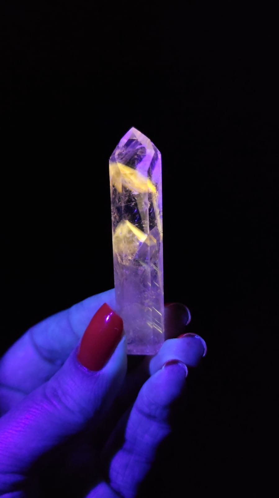 Reações UV em cristais de Quartzo são muito raras principalmente em linhas definidas como é o caso destas preciosidades, em sua maioria formando Phantom 💎