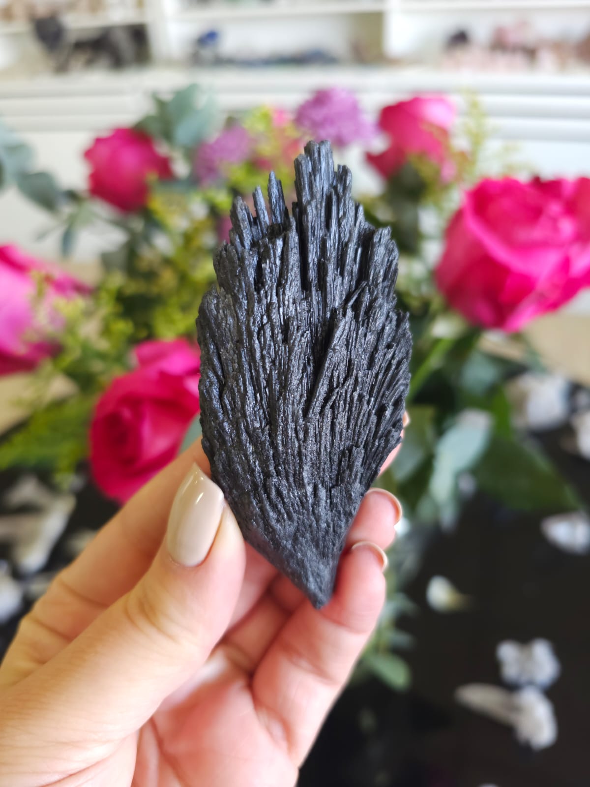 Um excelente cristal de limpeza energética, ela pode ser usada literalmente para varrer a sua aura limpando e cortando cordões energéticos negativos ✨