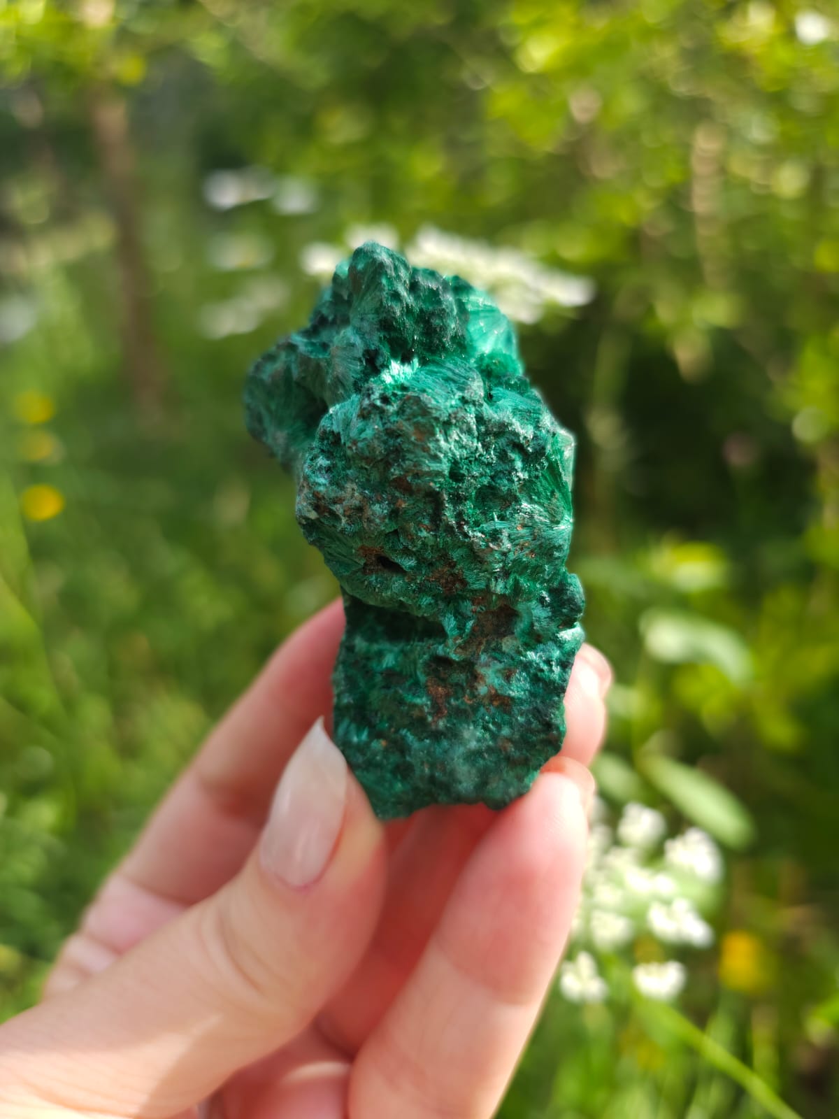 Essa formação é uma formação natural em fibras, mais rara que as Malaquitas compactas que normalmente temos por aqui, elas são garimpadas na Republica do Congo – África.