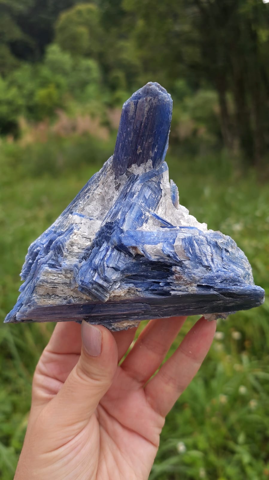 Vibrando como uma lâmina de luz celestial, ecoando a presença firme e compassiva do Arcanjo Miguel, a Cianita Azul 💎