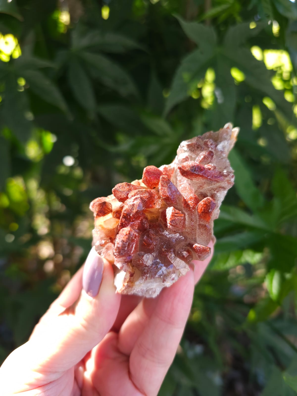 Aqui nesta formação, a cor vermelha ocorre pela alta incidência de minério de ferro no solo onde esses cristais foram gerados, no nosso organismo o ferro é um nutriente essencial para a vida e atua principalmente na fabricação das células vermelhas do sangue e no transporte do oxigênio para todas as células do corpo❤️