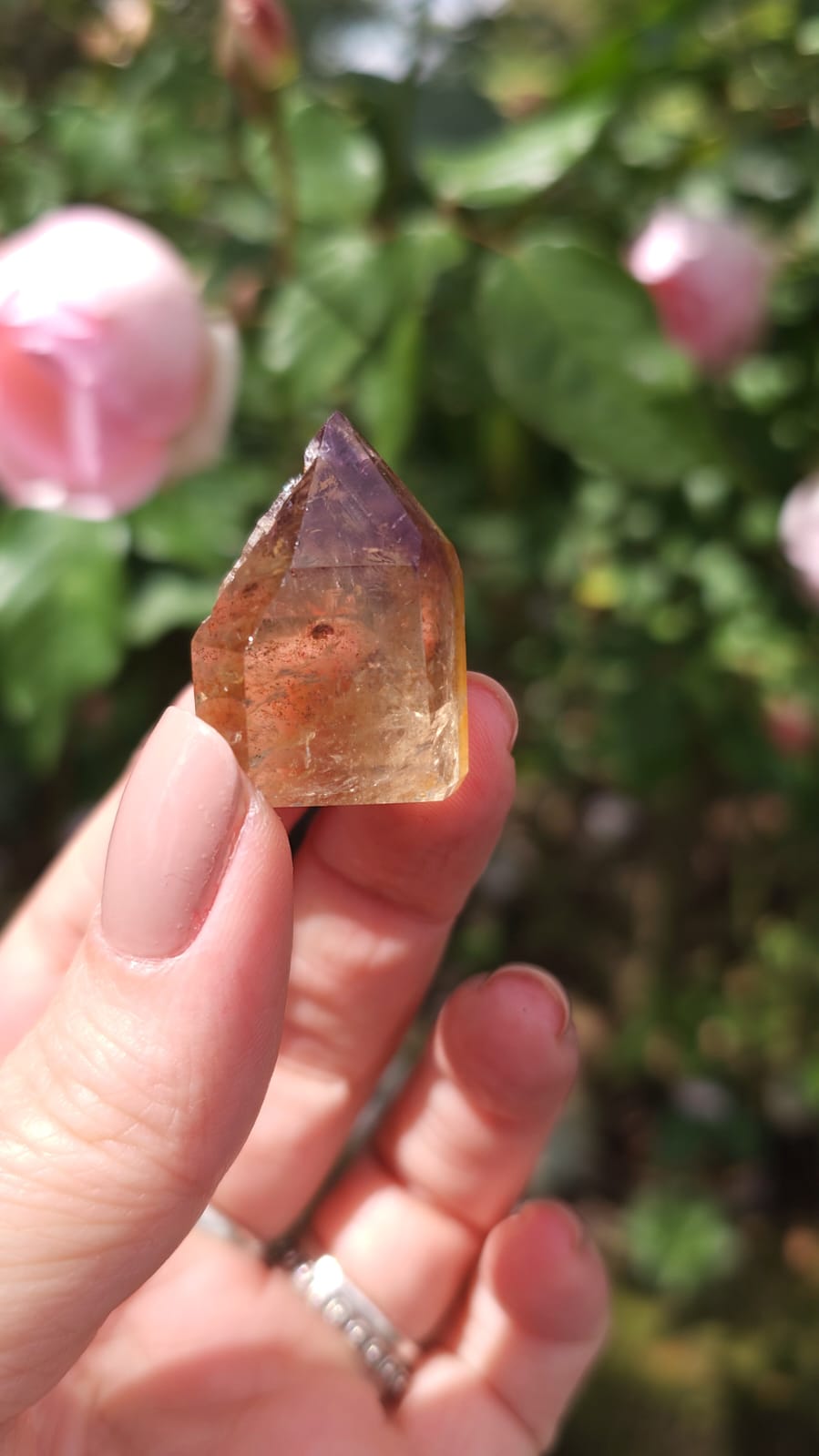Uma mistura de cristais incluindo de forma alternada Fumê, Citrino e Quartzo Incolor, recebendo uma capa de Ametista gerando uma energia de altíssima vibração✨