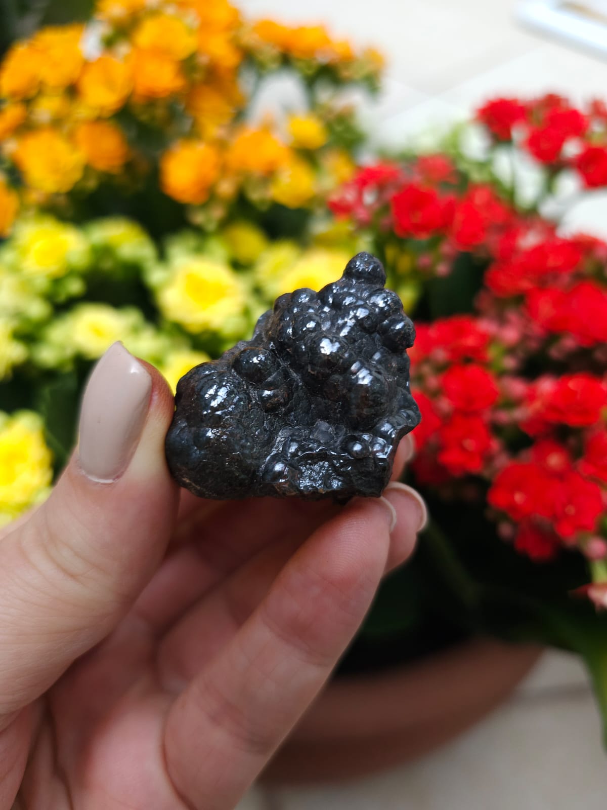 A Hematita Botrioidal é rara e sua formação é caracterizada por “bolhas” na sua superfície, uma formação que carrega o poder da metamorfose. A hematita estimula o poder inato da energia criativa invisível, enquanto simultaneamente estende sua influência para a manifestação, mostrando a capacidade de transformação de frequências vibratórias.