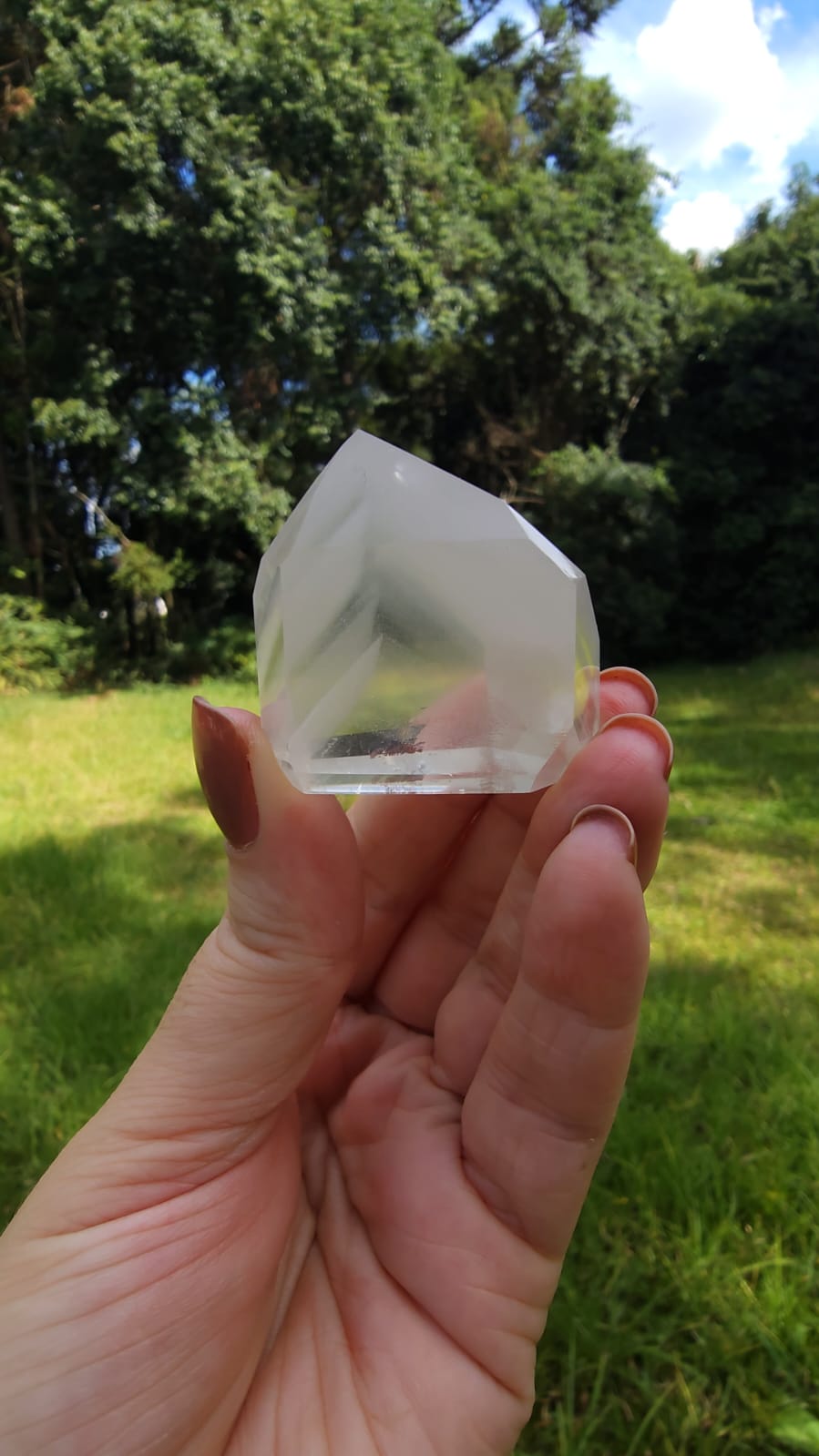 Quando esse cristal começou a nascer nas profundezas do mundo mineral, seu crescimento foi interrompido por um tempo. A montanha respirou, os rios subterrâneos mudaram de caminho, e uma fina poeira de luz branca se depositou sobre sua face ✨️