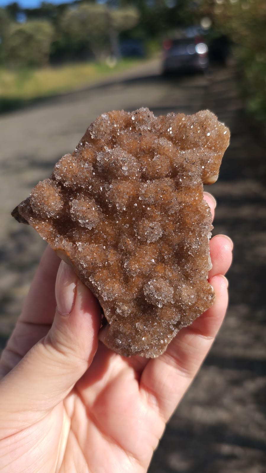 Essa formação é um raro achado recentemente nas terras do Rio Grande do Sul, uma formação única de Calcedônia Sacarodial Dourada, recebe esse nome pela cobertura de micro cristais que se assemelha a açúcar cristalizado.