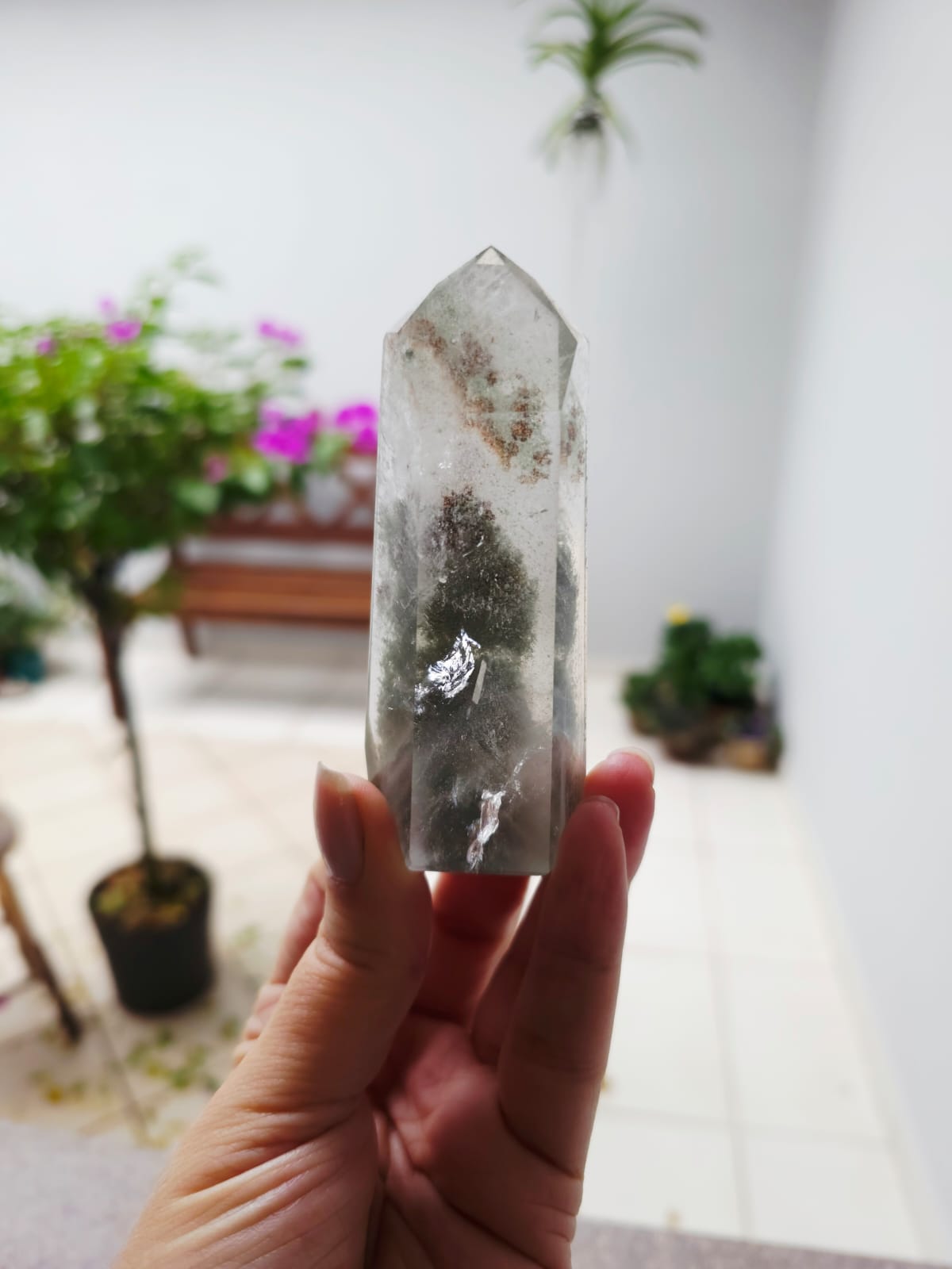 A mistura do Quartzo Transparente com a Clorita forma uma alquimia potente com a força de cura das Cloritas é amplificada pelo poder do Quartzo de expandir a energia ✨