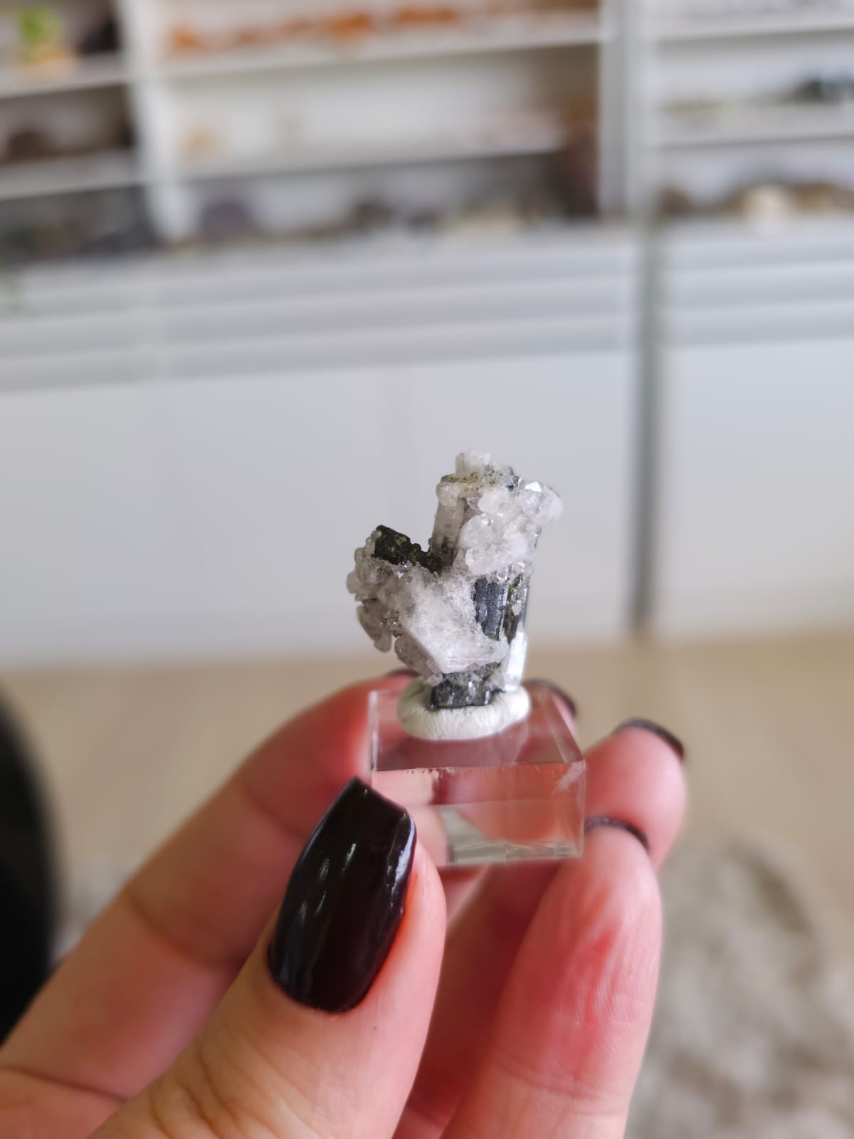 Nesta formação Epidoto está coberto de Quartzo em Drusa, nesta alquimia o Quartzo é um grande amplificador da energia do Epidoto, principalmente pelo fato de estar em Drusa ✨