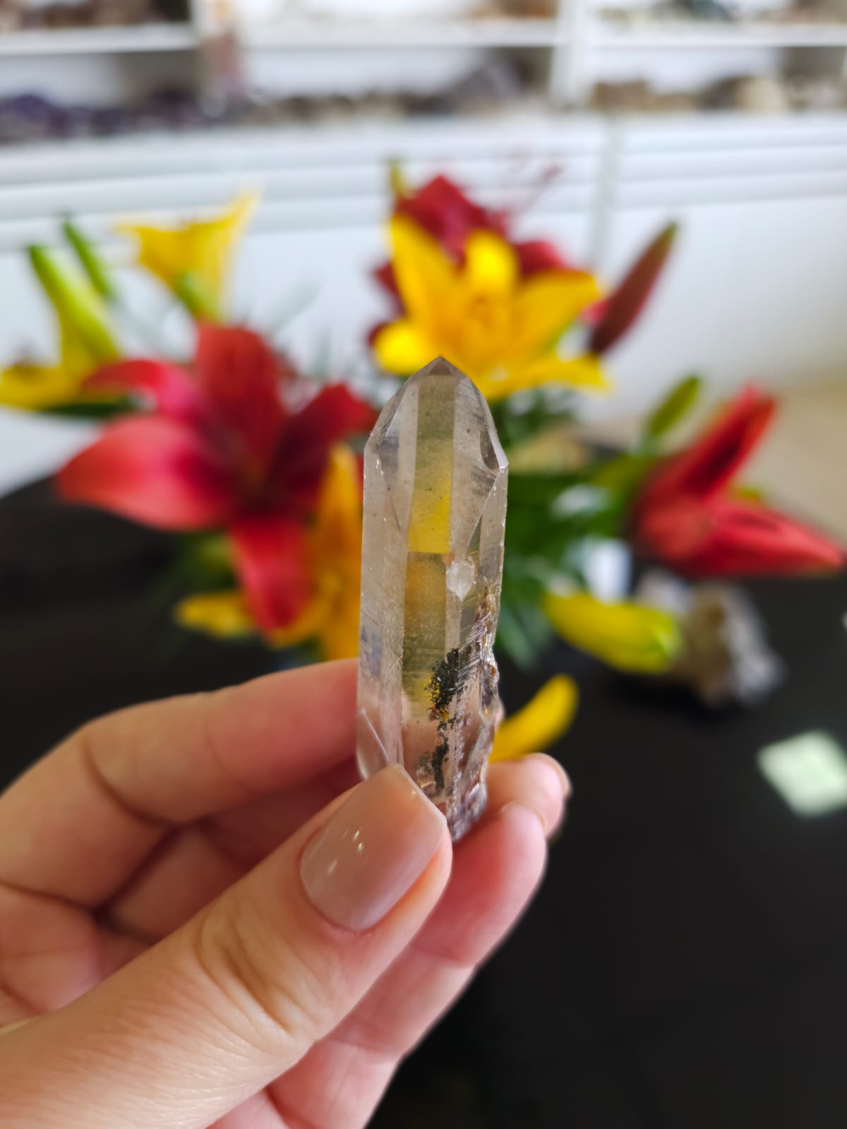 São cristais que tem inclusões minerais diversas, muitas vezes coloridas em diferentes tons ✨
