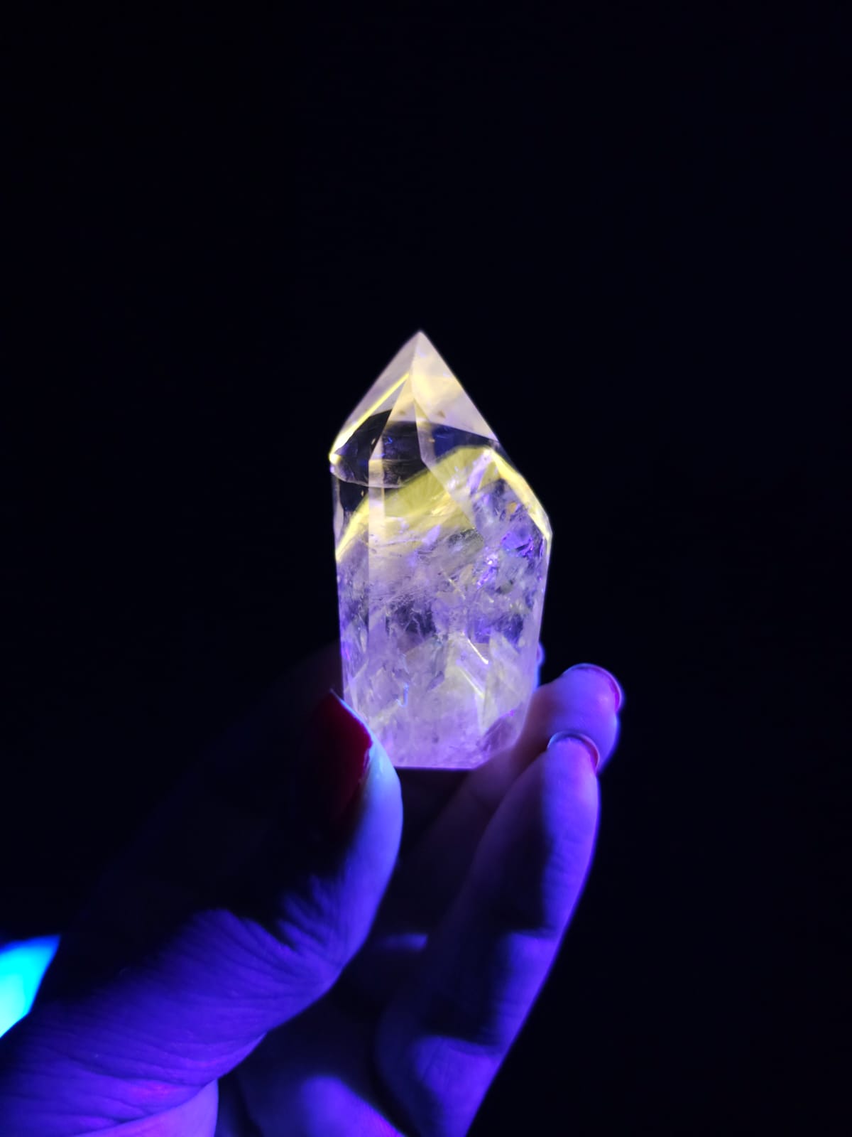Reações UV em cristais de Quartzo são muito raras principalmente em linhas definidas como é o caso destas preciosidades, em sua maioria formando Phantom 💎