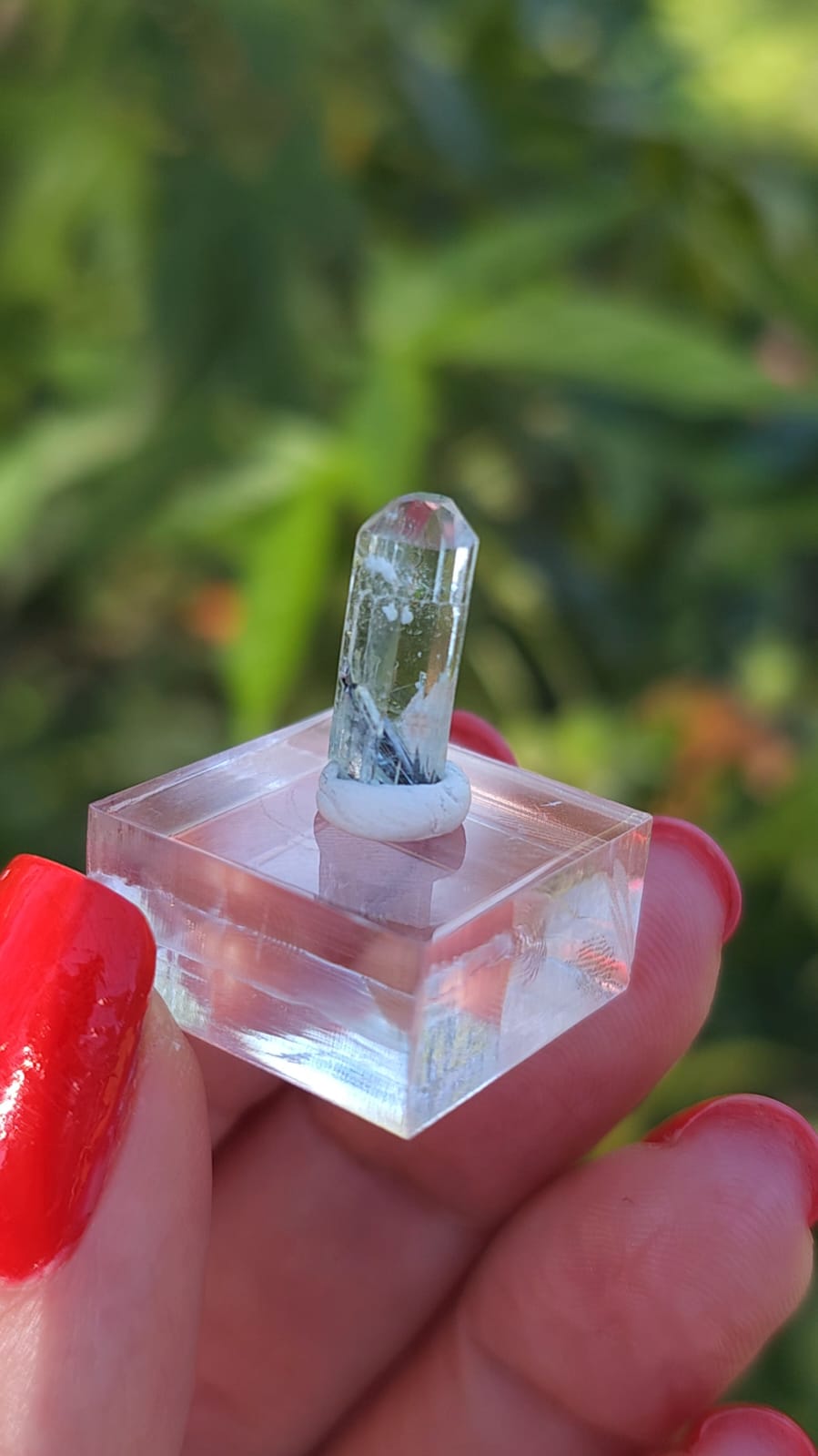 Garimpada no Espírito Santo uma rara Água Marinha em formação natural com inclusão de outro mineral em sua base.