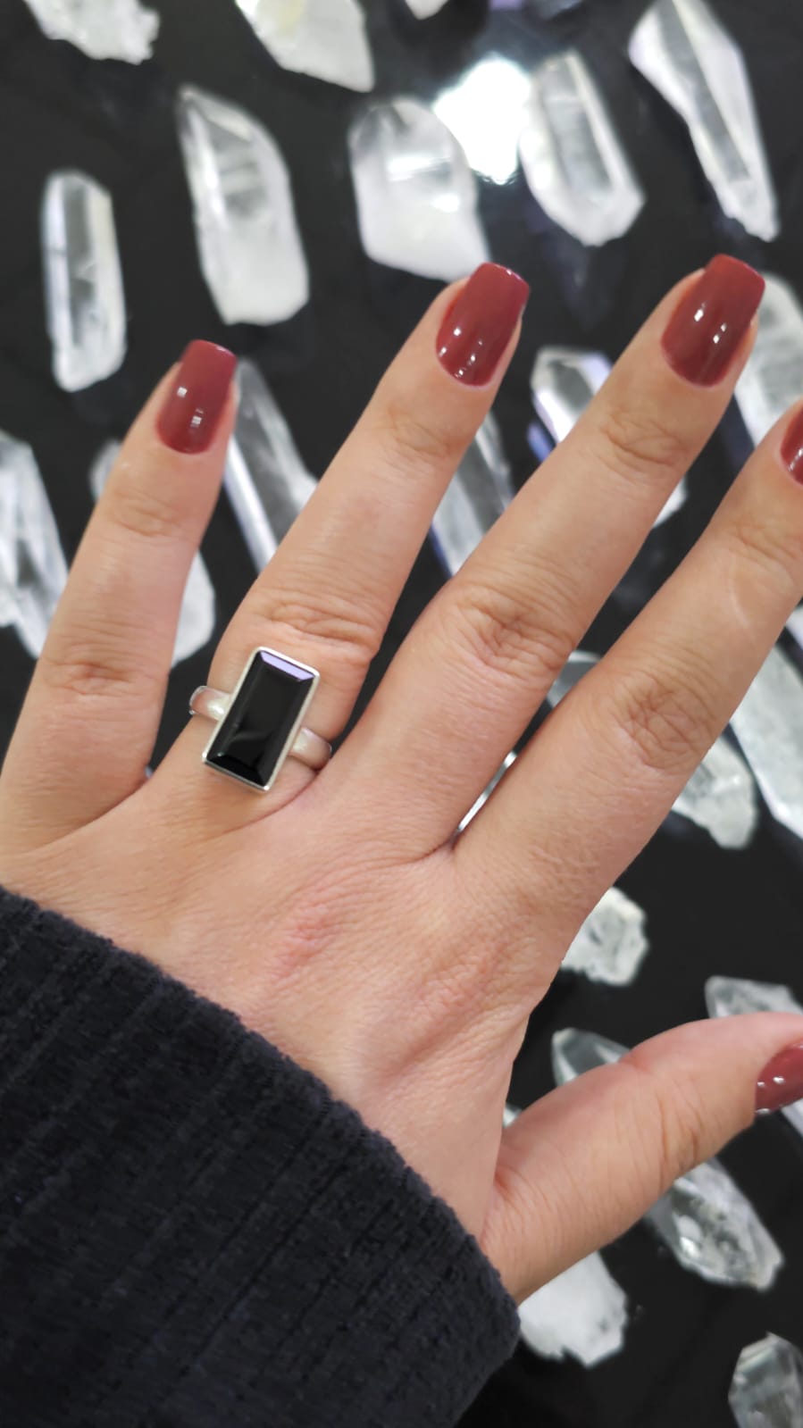 Anel de Turmalina Negra em prata 925, númeração fixa.