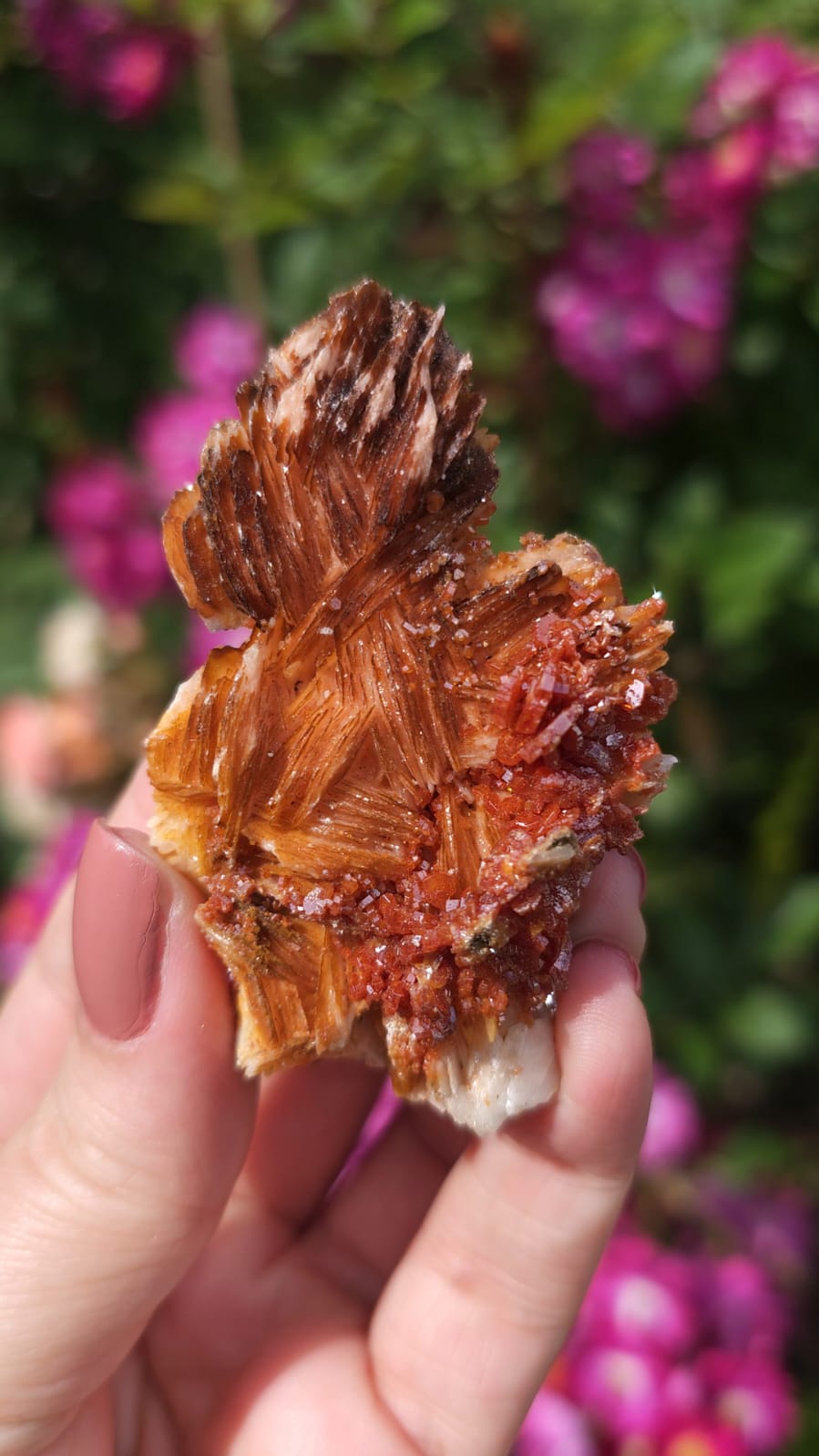 Já a Vanadinita trabalha com o elemento fogo e vibra com os nossos Chakras inferiores, nos ajudando a permanecer conectados na terra sem perder o contato com as energias superiores, ajudando assim a ancorar as energias da Barita que são muito sutis e elevadas.