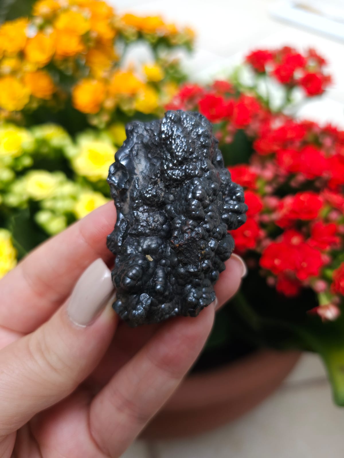 A Hematita Botrioidal é rara e sua formação é caracterizada por “bolhas” na sua superfície, uma formação que carrega o poder da metamorfose. A hematita estimula o poder inato da energia criativa invisível, enquanto simultaneamente estende sua influência para a manifestação, mostrando a capacidade de transformação de frequências vibratórias.