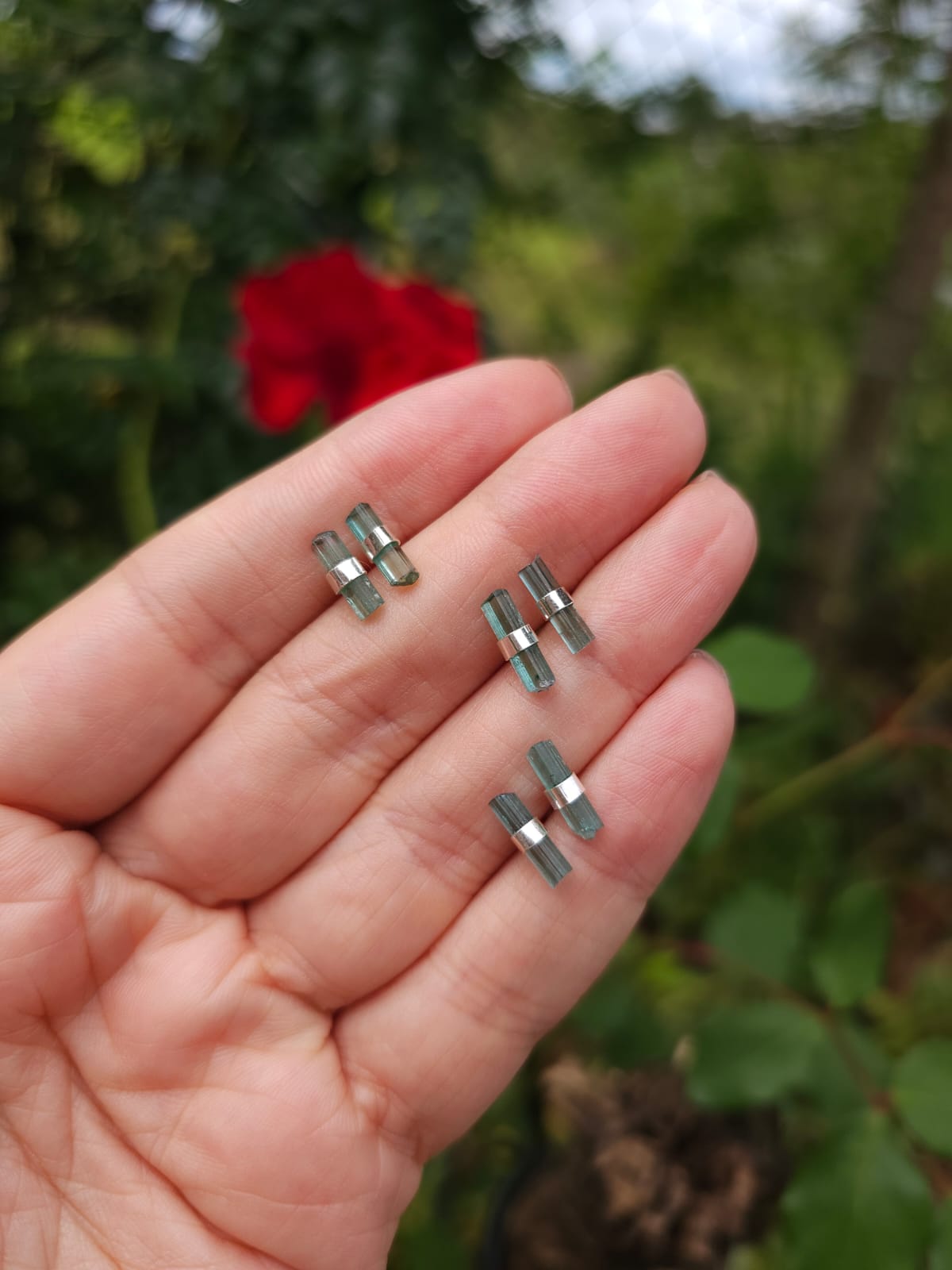 Sussurros para nossos ouvidos, encantadores brincos de Turmalina Azul em formação natural.