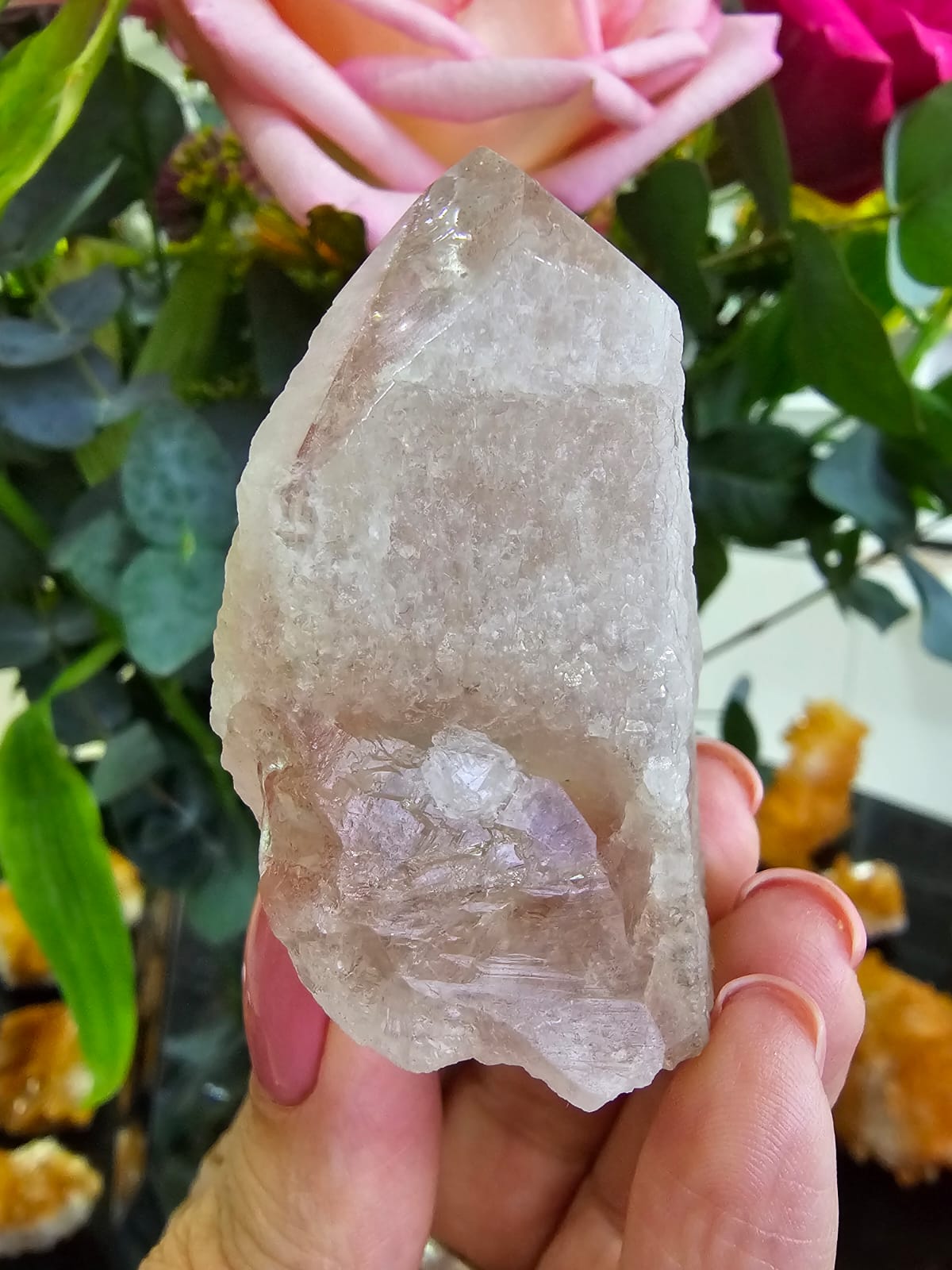 Pontas de Pink Sugar, por dentro em tom rosa bem suave com transparência e a cobertura de cristal branco bem clarinho, as pontas são cobertas pequenas “escamas” 🤍
