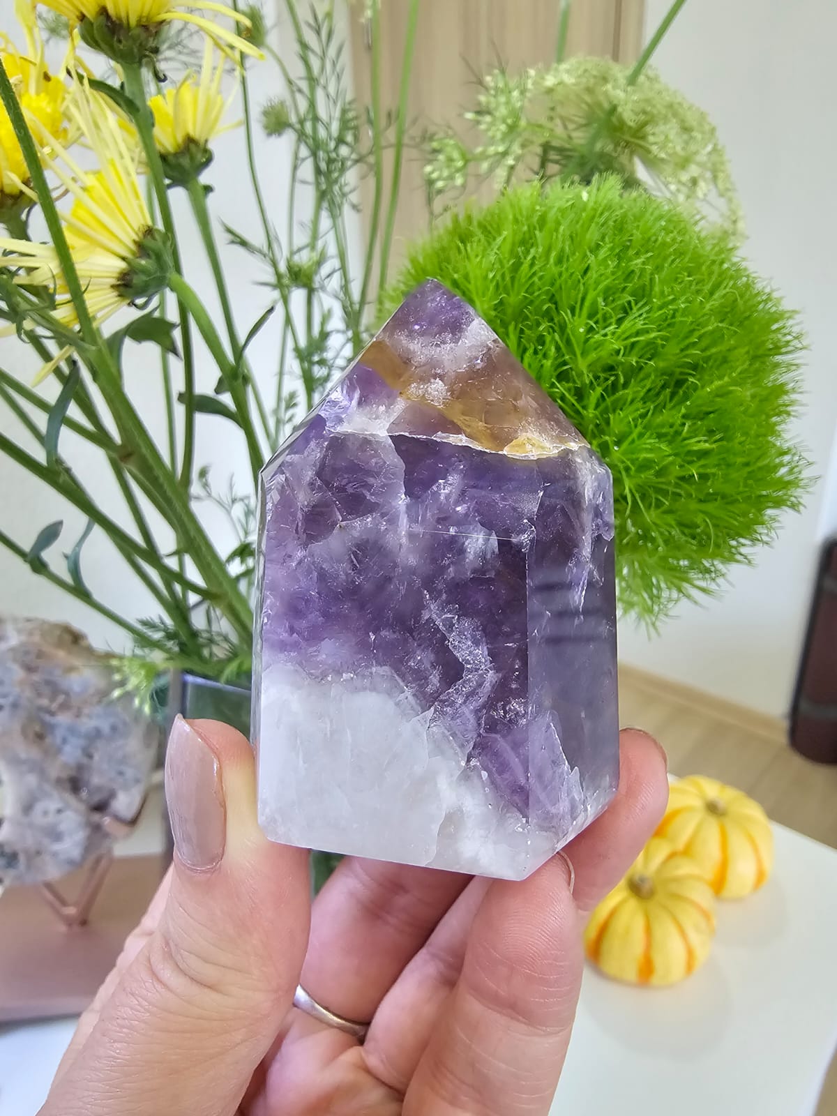 A Ametista Chevron é uma formação de Ametista com Quartzo Branco, atingindo assim um padrão vibratório mais elevado que a Ametista normal✨