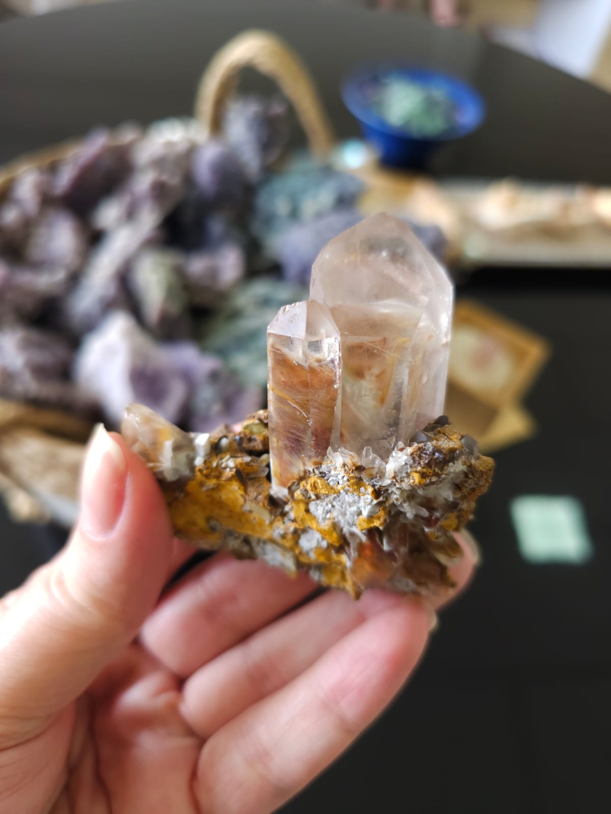 Os Cristais Anfibólios são rochas com inclusões ricas e vibrantes, compostas por minerais como hematita, caulinita, límonita e rutilo. Essas formações criam padrões internos únicos, muitas vezes semelhantes a paisagens etéreas ✨