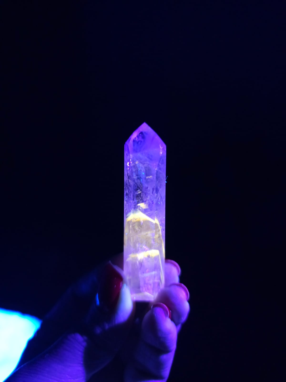 Reações UV em cristais de Quartzo são muito raras principalmente em linhas definidas como é o caso destas preciosidades, em sua maioria formando Phantom 💎