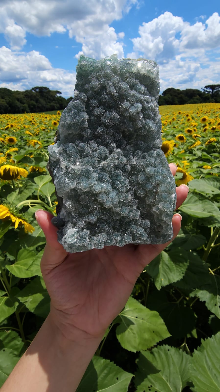 A cristalização do vídeo, foi garimpada na Serra Gaúcha e sua cor totalmente natural é muito rara na família dos Quartzos, a sua cobertura é de milhares de micro cristais que lembram açúcar e recebem no nome de Sacaroidal ✨️