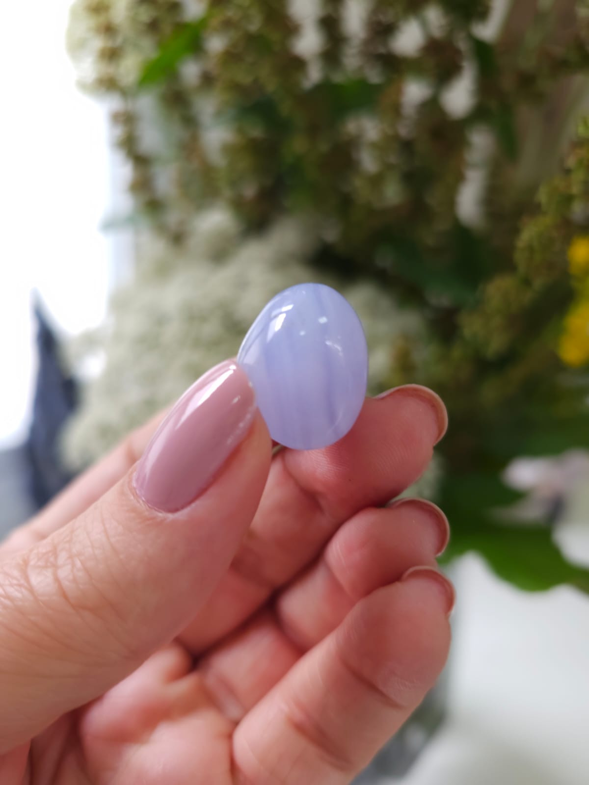 A Ágata Blue Lace é um cristal que nos ajuda a nutrir nossa criança (e o adulto) com o SIMPLES, com os desenhos nas nuvens, o se equilibrar na calçada, o rir dos tropeços, com os castelos de areia que por 1 minuto se transformam em reinos encantados.