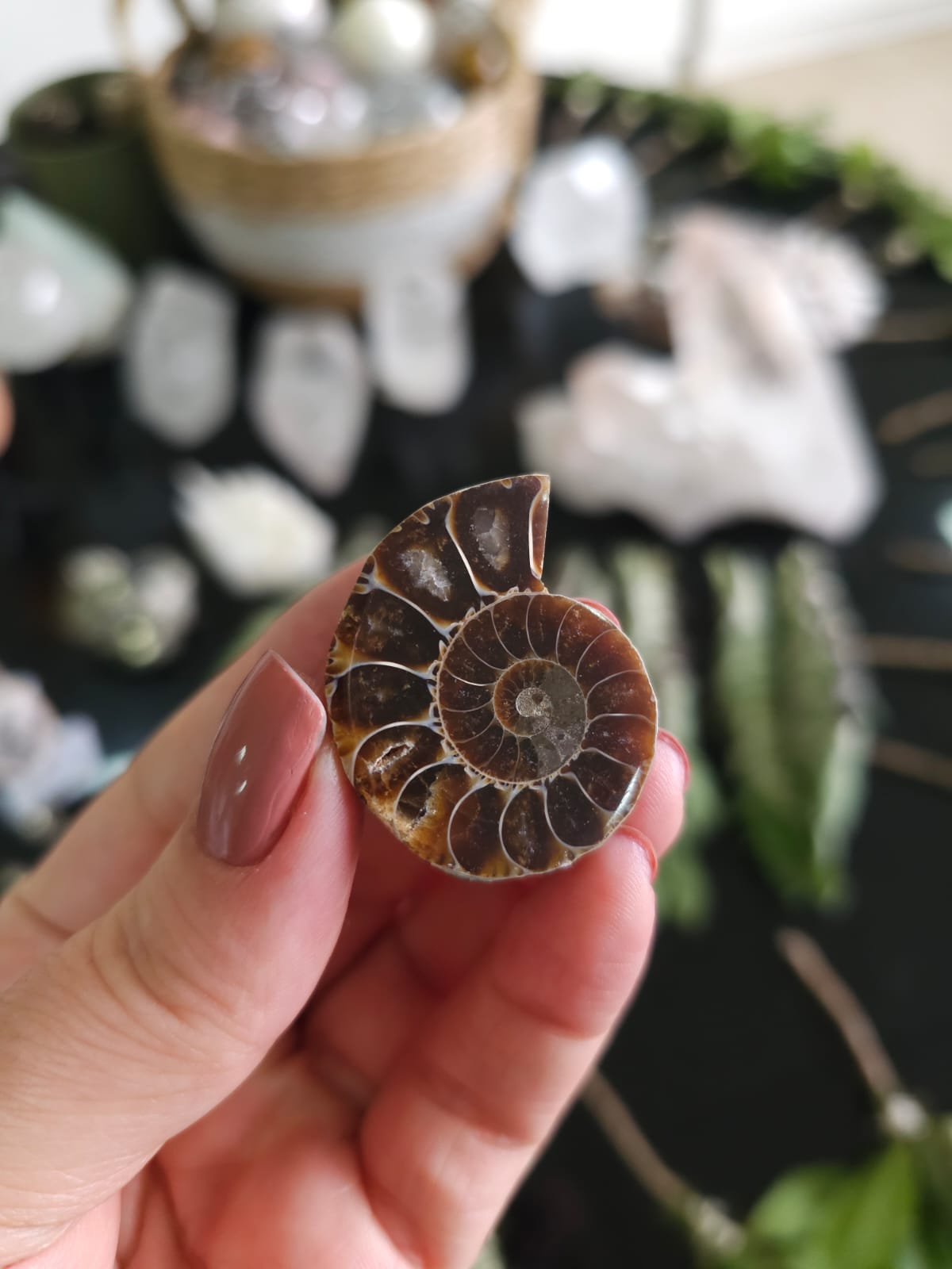 Fóssil cortado ao meio e polido