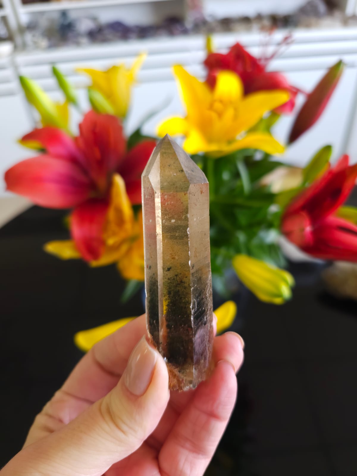 São cristais que tem inclusões minerais diversas, muitas vezes coloridas em diferentes tons ✨