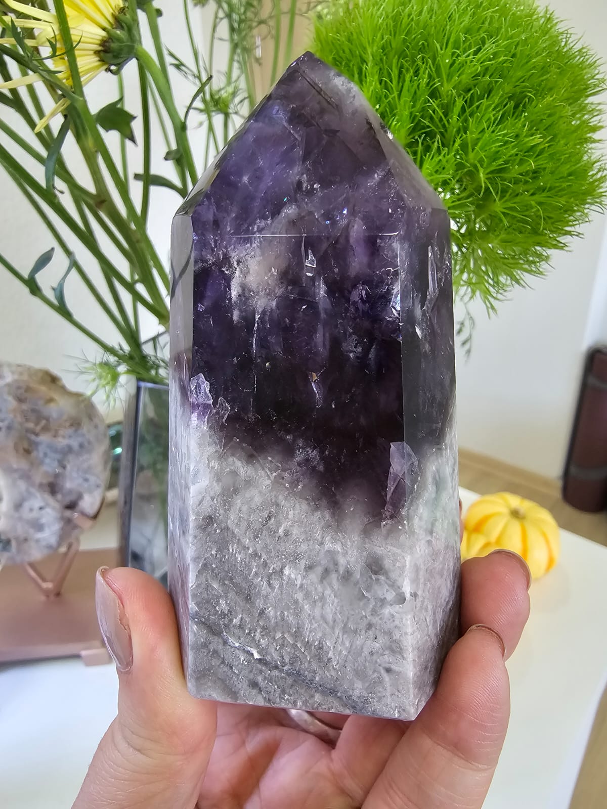 A Ametista Chevron é uma formação de Ametista com Quartzo Branco, atingindo assim um padrão vibratório mais elevado que a Ametista normal✨
