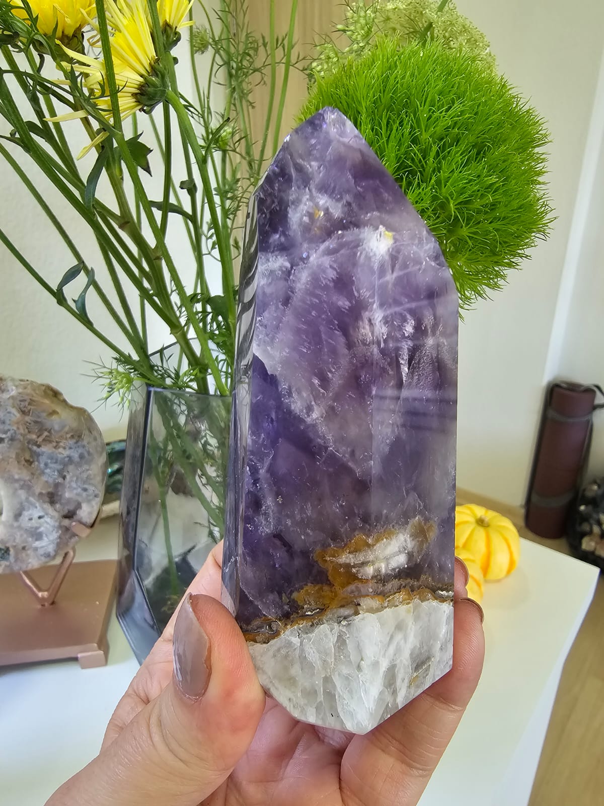 A Ametista Chevron é uma formação de Ametista com Quartzo Branco, atingindo assim um padrão vibratório mais elevado que a Ametista normal✨