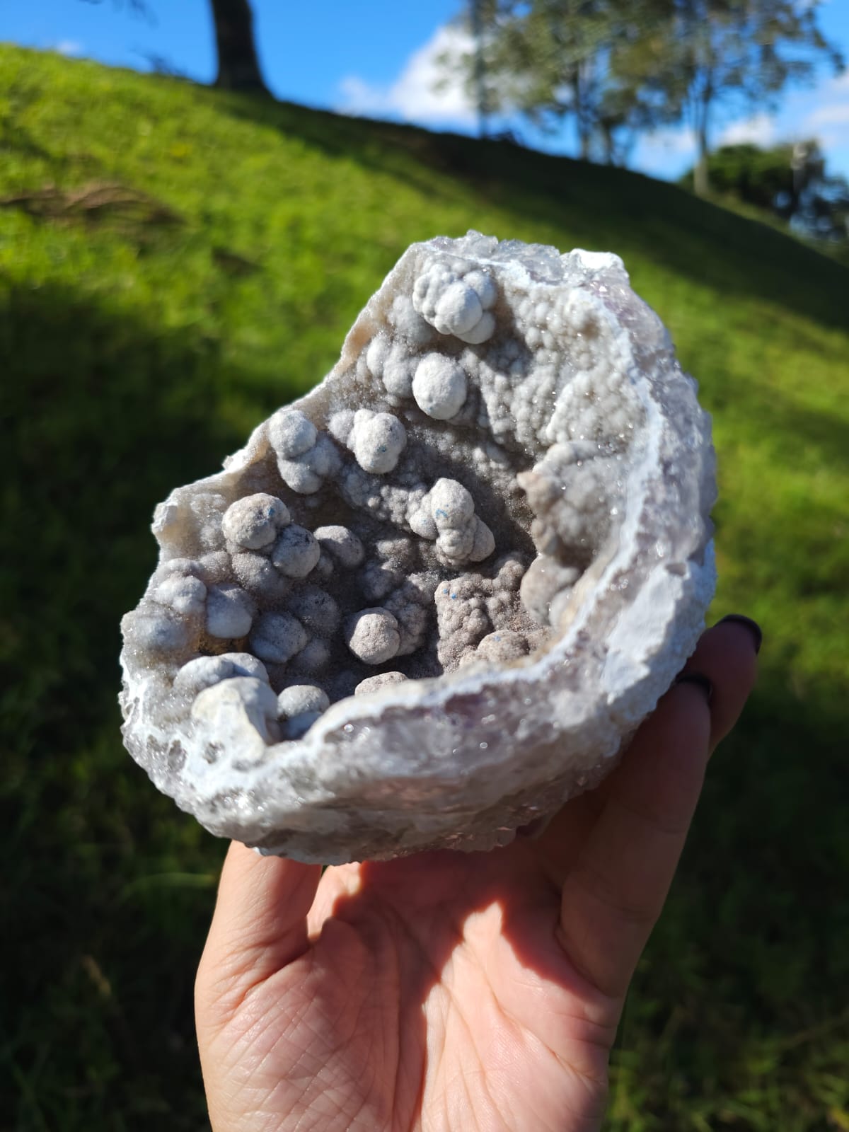 Por dentro, formações botrioidais cobertas de brilho fino✨️