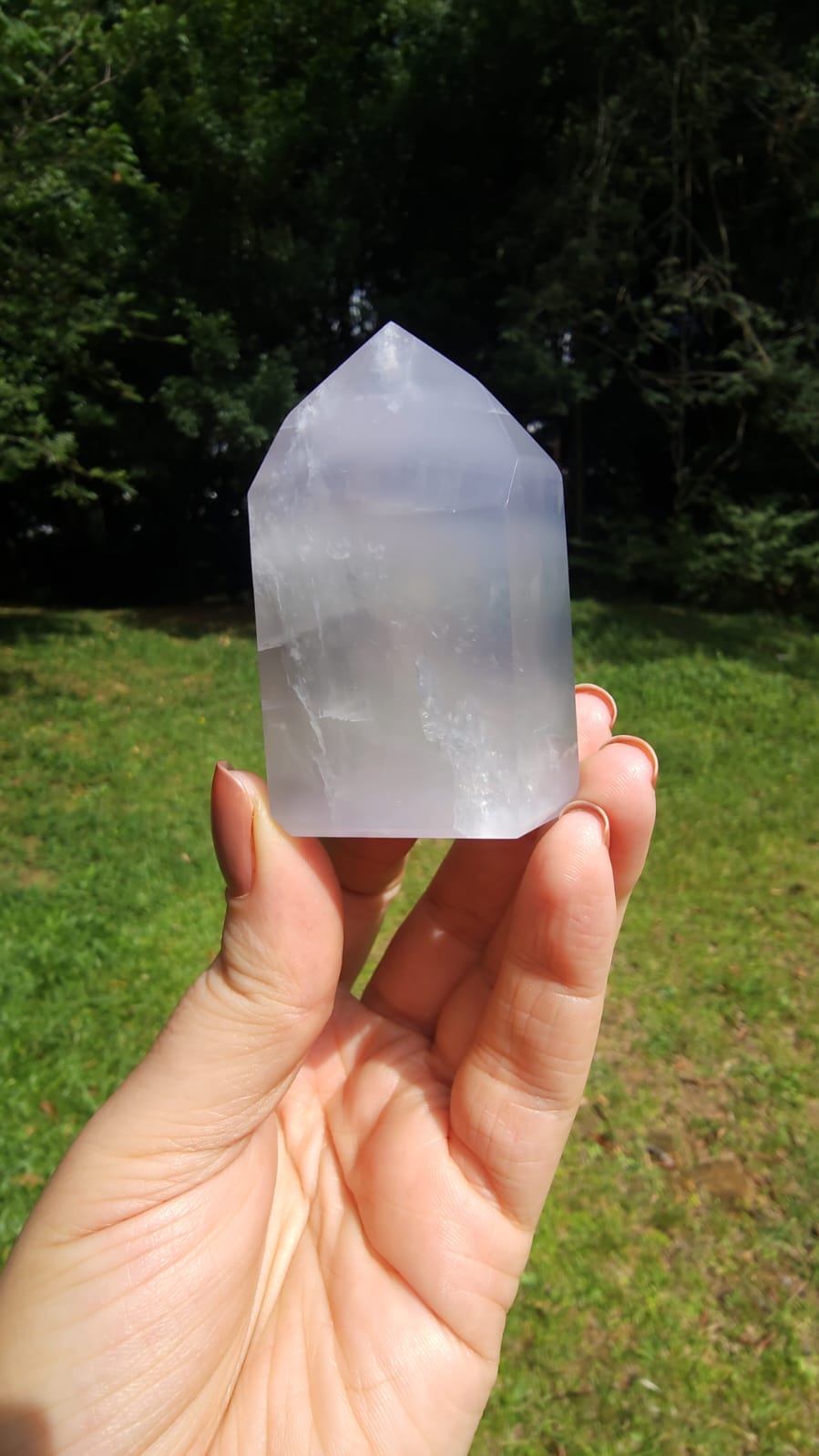A Fluorita Lavanda carrega uma energia suave, quase etérea, como um sopro de calma que envolve a mente e o espírito.
