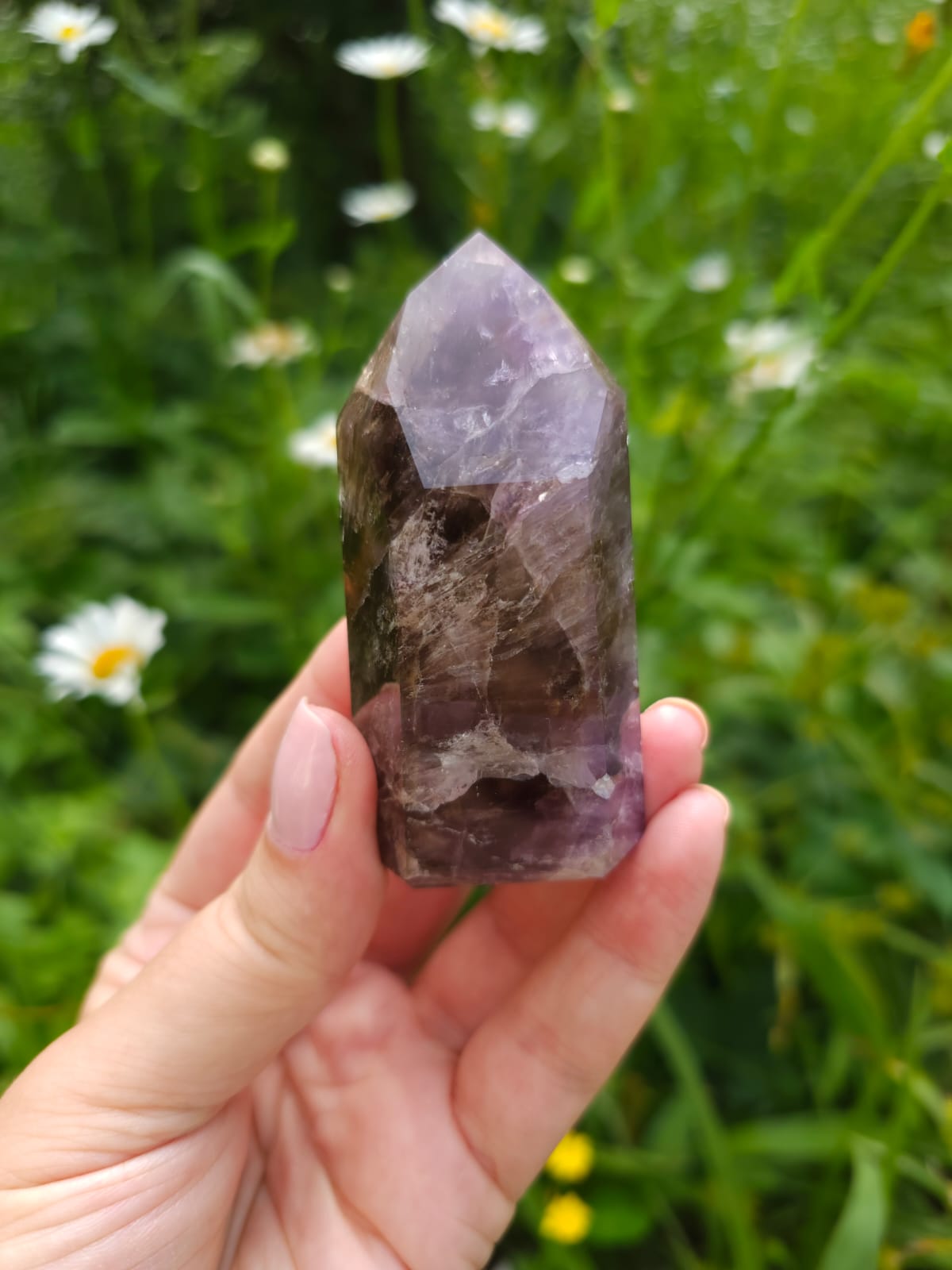 Ele possui as energias de até sete minerais, o que lhe confere um grande poder e uma altíssima vibração: Ametista, Quartzo Fumê, Quartzo com Rutilo, Goethita, Lepidocrocita, Quartzo e Cacoxenita são minerais que constumam compor essa formação✨