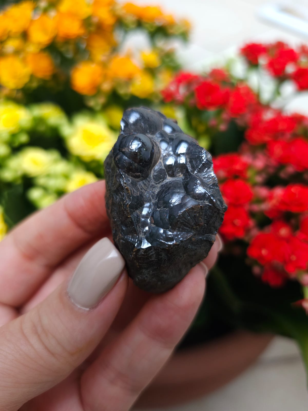 A Hematita Botrioidal é rara e sua formação é caracterizada por “bolhas” na sua superfície, uma formação que carrega o poder da metamorfose. A hematita estimula o poder inato da energia criativa invisível, enquanto simultaneamente estende sua influência para a manifestação, mostrando a capacidade de transformação de frequências vibratórias.