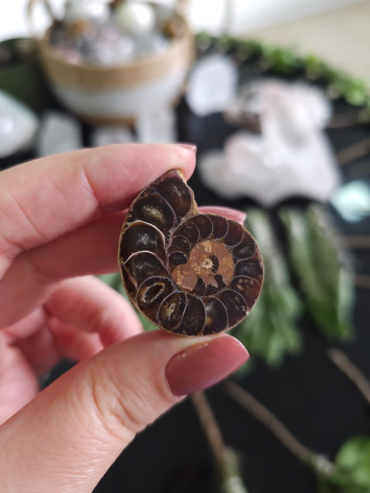 Fóssil cortado ao meio e polido