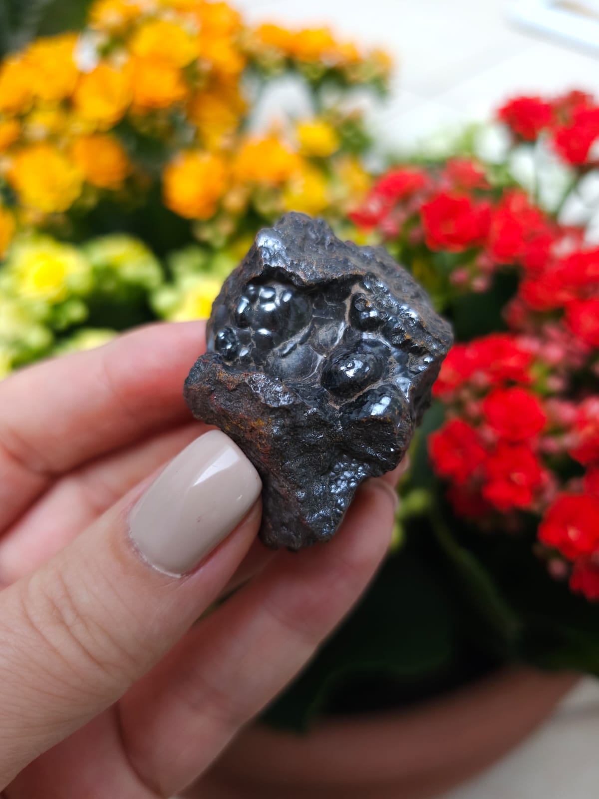 A Hematita Botrioidal é rara e sua formação é caracterizada por “bolhas” na sua superfície, uma formação que carrega o poder da metamorfose. A hematita estimula o poder inato da energia criativa invisível, enquanto simultaneamente estende sua influência para a manifestação, mostrando a capacidade de transformação de frequências vibratórias.