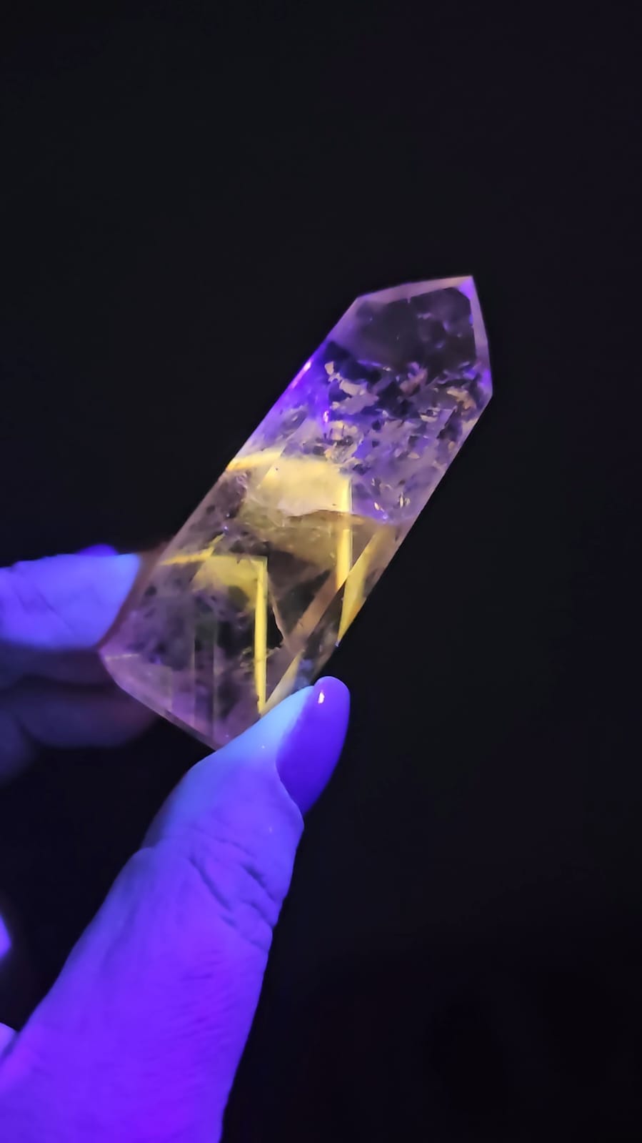 Reações UV em cristais de Quartzo são muito raras principalmente em linhas definidas como é o caso destas preciosidades, em sua maioria formando Phantom 💎