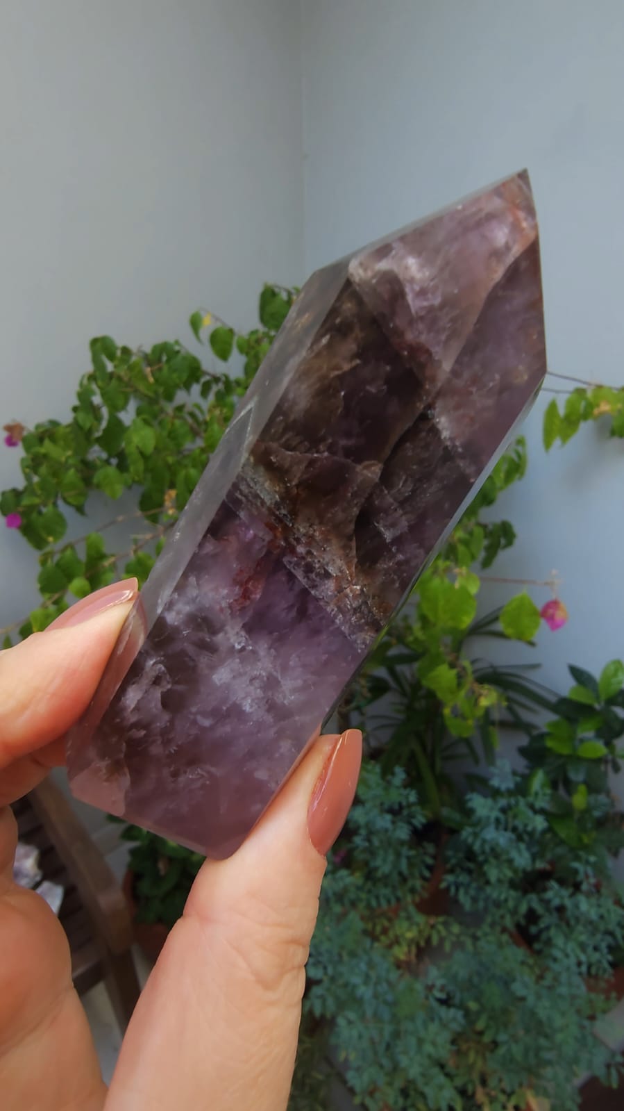 Ele possui as energias de até sete minerais, o que lhe confere um grande poder e uma altíssima vibração: Ametista, Quartzo Fumê, Quartzo com Rutilo, Goethita, Lepidocrocita, Quartzo e Cacoxenita são minerais que constumam compor essa formação✨