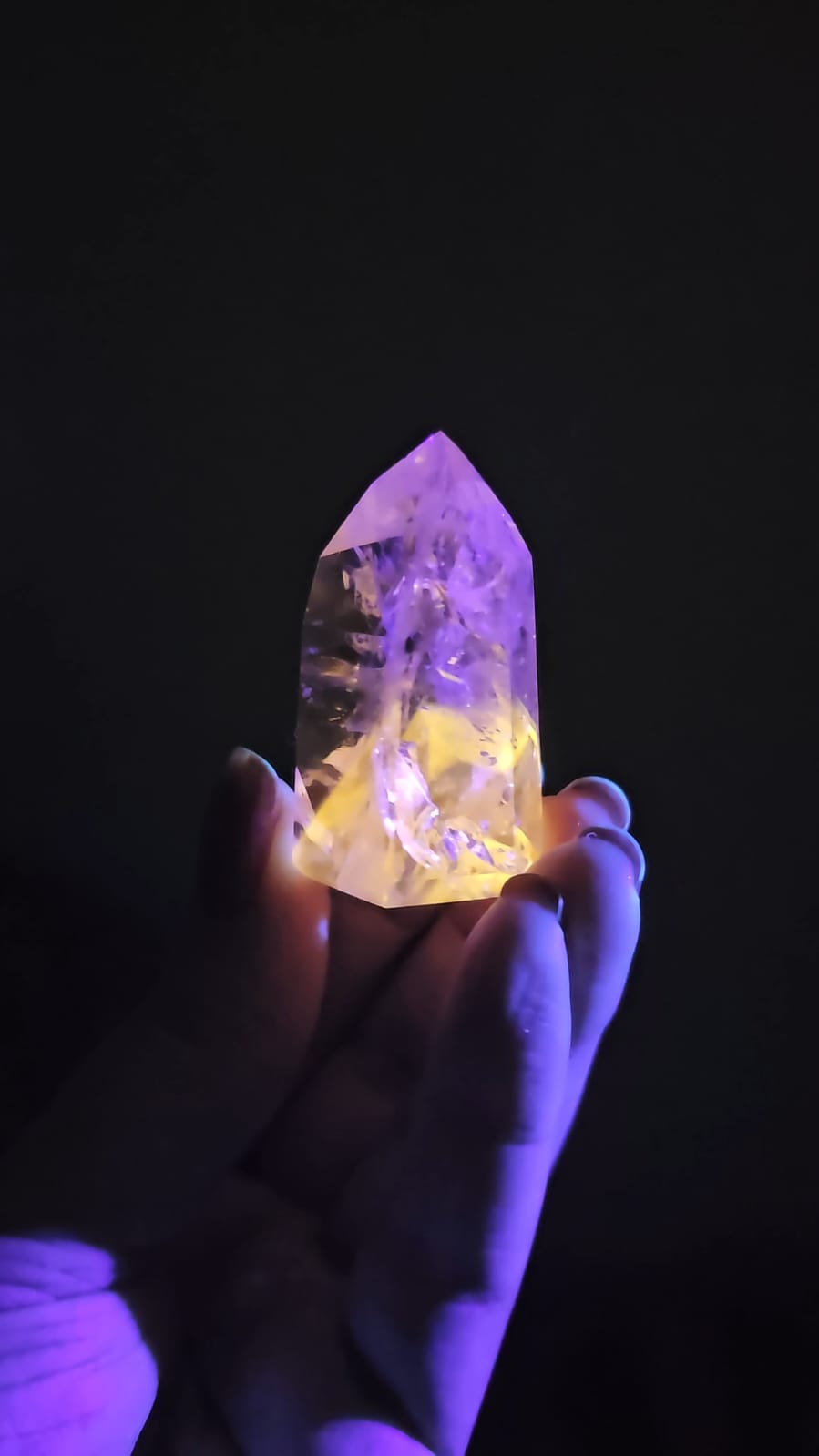 Reações UV em cristais de Quartzo são muito raras principalmente em linhas definidas como é o caso destas preciosidades, em sua maioria formando Phantom 💎