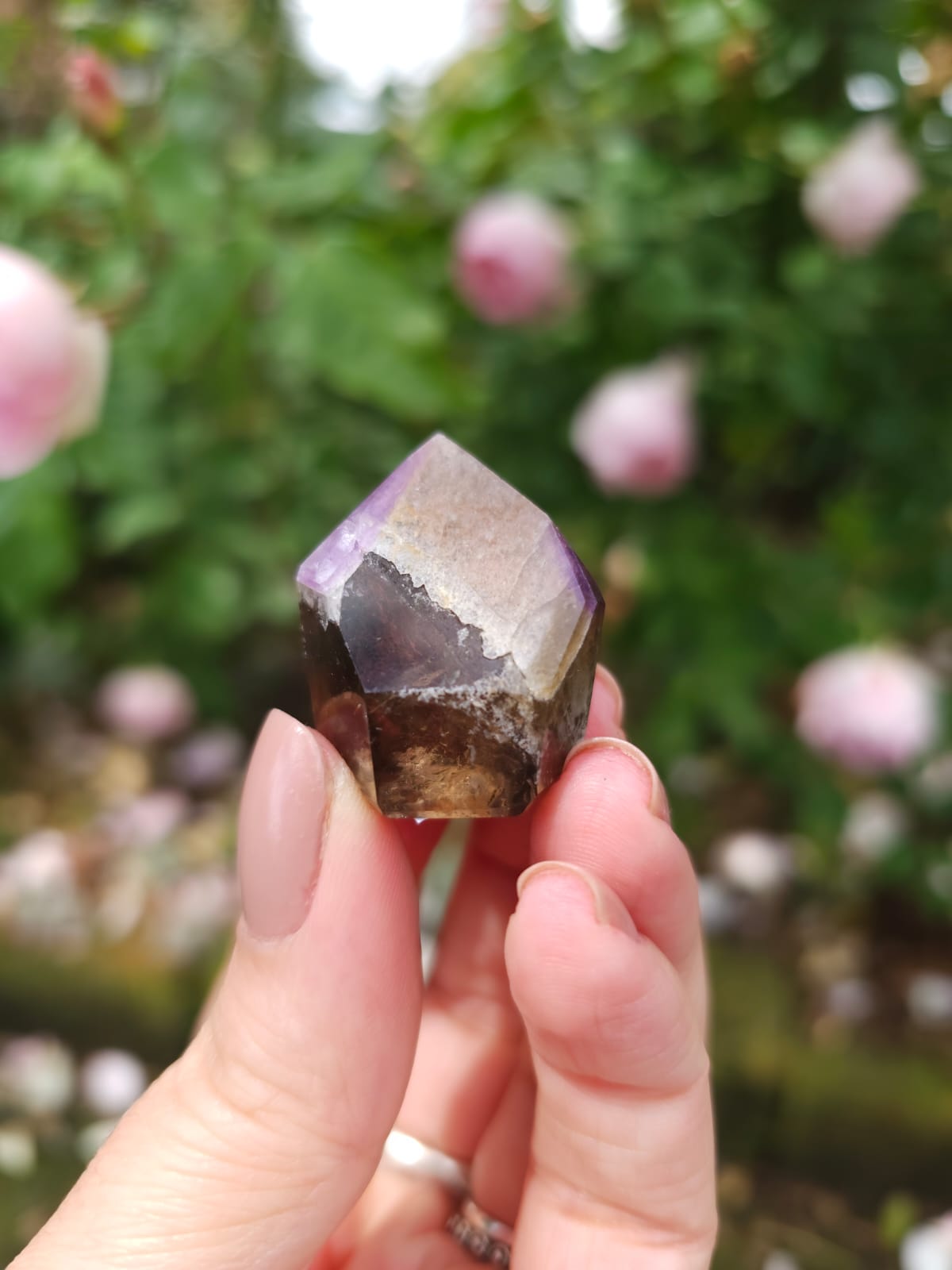 Uma mistura de cristais incluindo de forma alternada Fumê, Citrino e Quartzo Incolor, recebendo uma capa de Ametista gerando uma energia de altíssima vibração✨