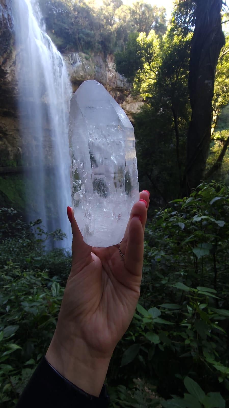 Cristal totalmente natural sem ajustes de lapidação com 779 gramas e 16cm de altura.