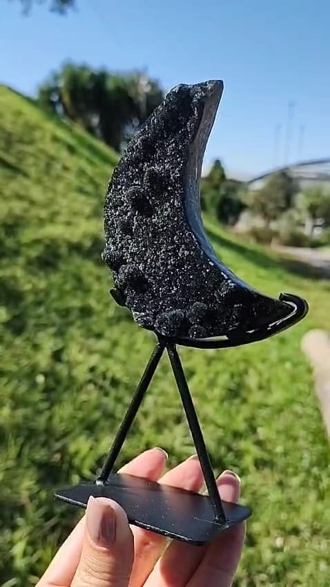 Como uma intensa noite estrelada...uma Lua de Calcedônia Negra cristalizada!