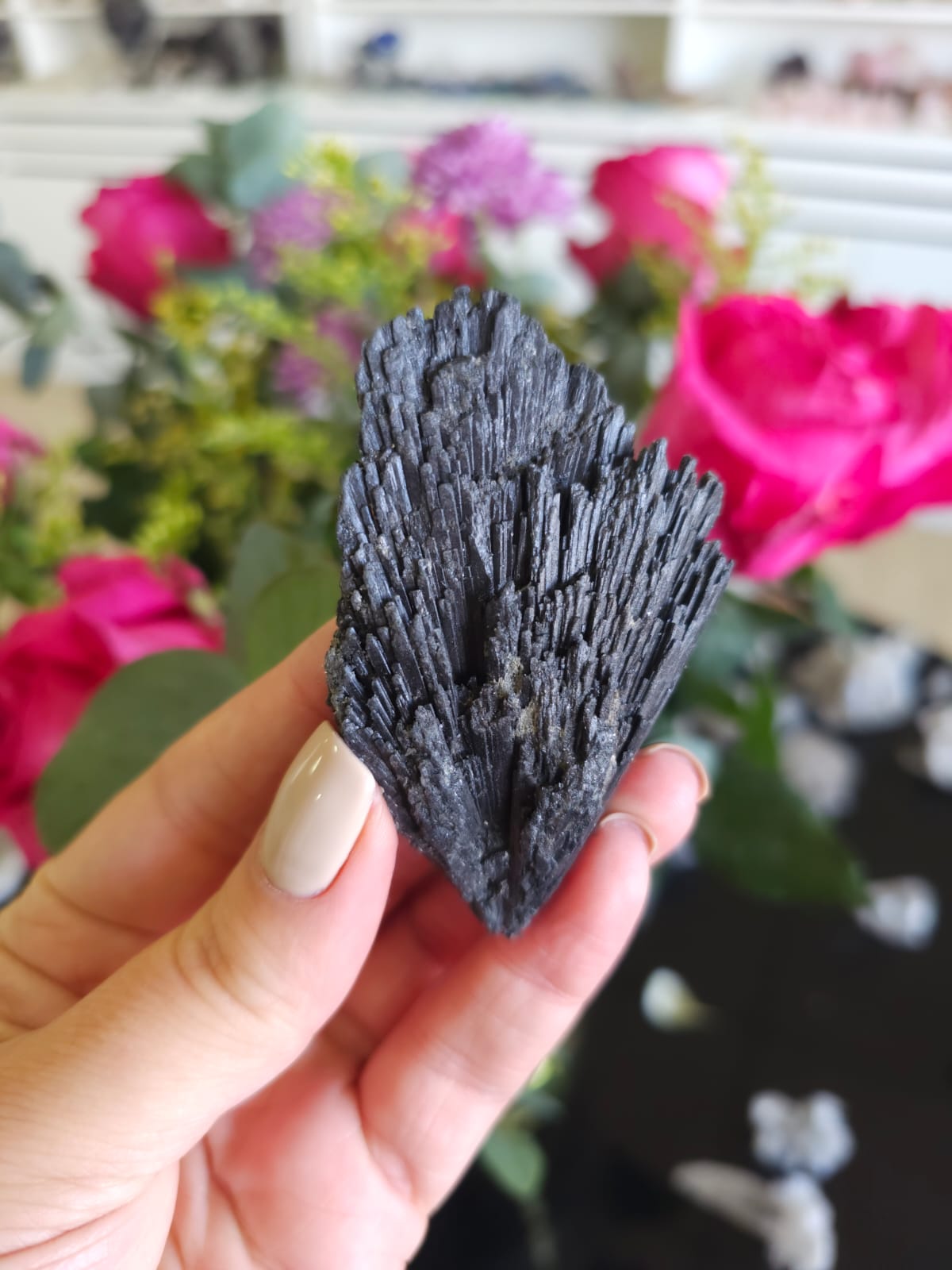 Um cristal que faz correspondência com a Cianita Azul, a energia da Cianita Negra também trabalha nossa proteção contra energias pesadas e até mesmo nossa própria negatividade ✨