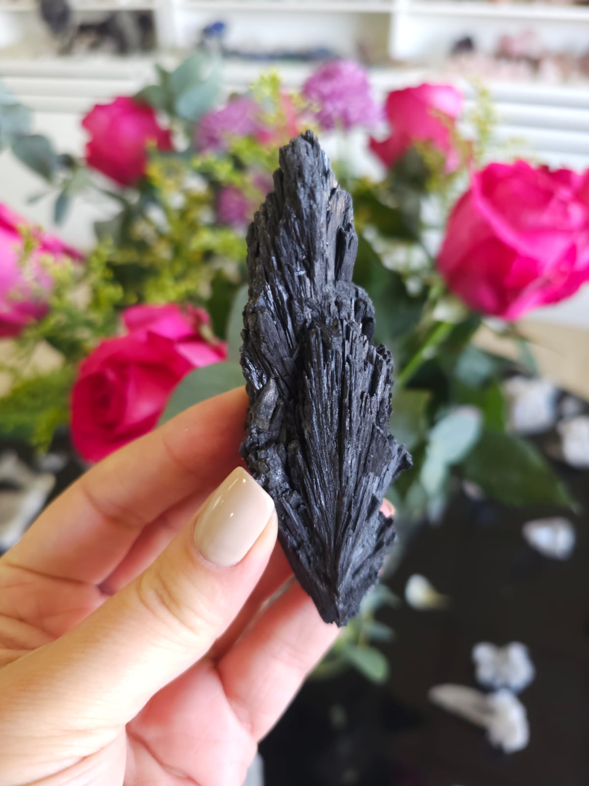 Um excelente cristal de limpeza energética, ela pode ser usada literalmente para varrer a sua aura limpando e cortando cordões energéticos negativos ✨