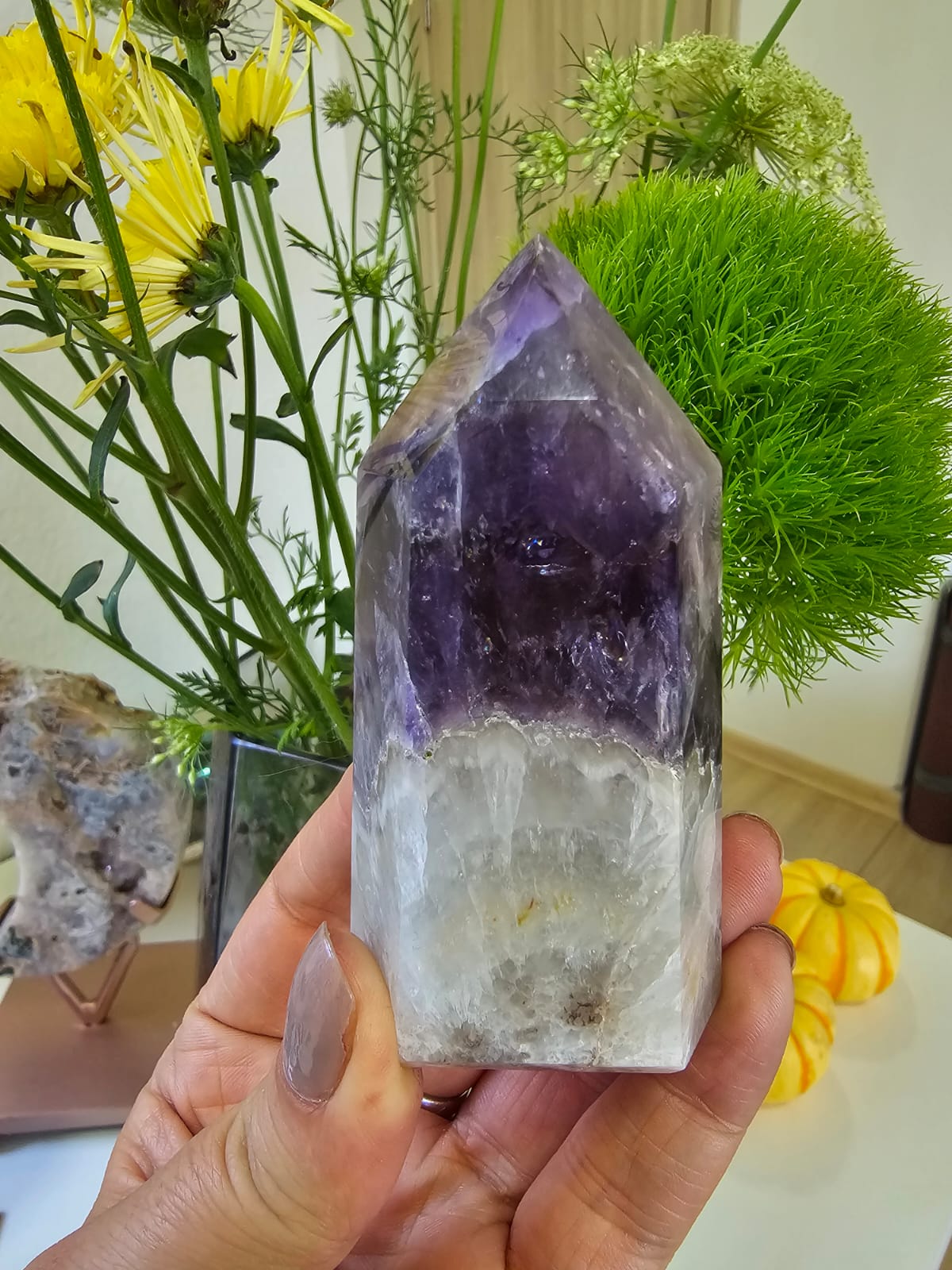 A Ametista Chevron é uma formação de Ametista com Quartzo Branco, atingindo assim um padrão vibratório mais elevado que a Ametista normal✨