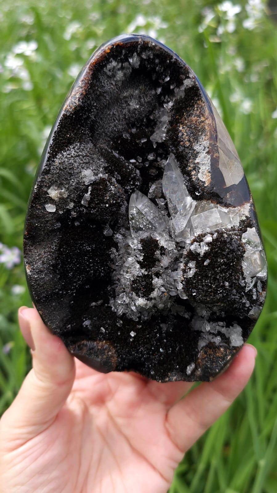 A Septariana é uma energia de ancoragem e força vital, vibrando e fortalecendo nosso Chakra Raiz, porém nesta formação do vídeo ela vai muito além do ancoramento, iluminada por Calcitas de transparência infinita e refletindo a força de todas as cores em um lindo efeito arco-íris, força essa que conecta direto com nossa energia mais superior, o Chackra Estrela da Alma ✨️