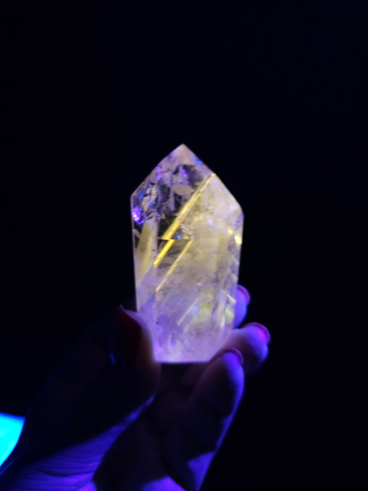 Reações UV em cristais de Quartzo são muito raras principalmente em linhas definidas como é o caso destas preciosidades, em sua maioria formando Phantom 💎